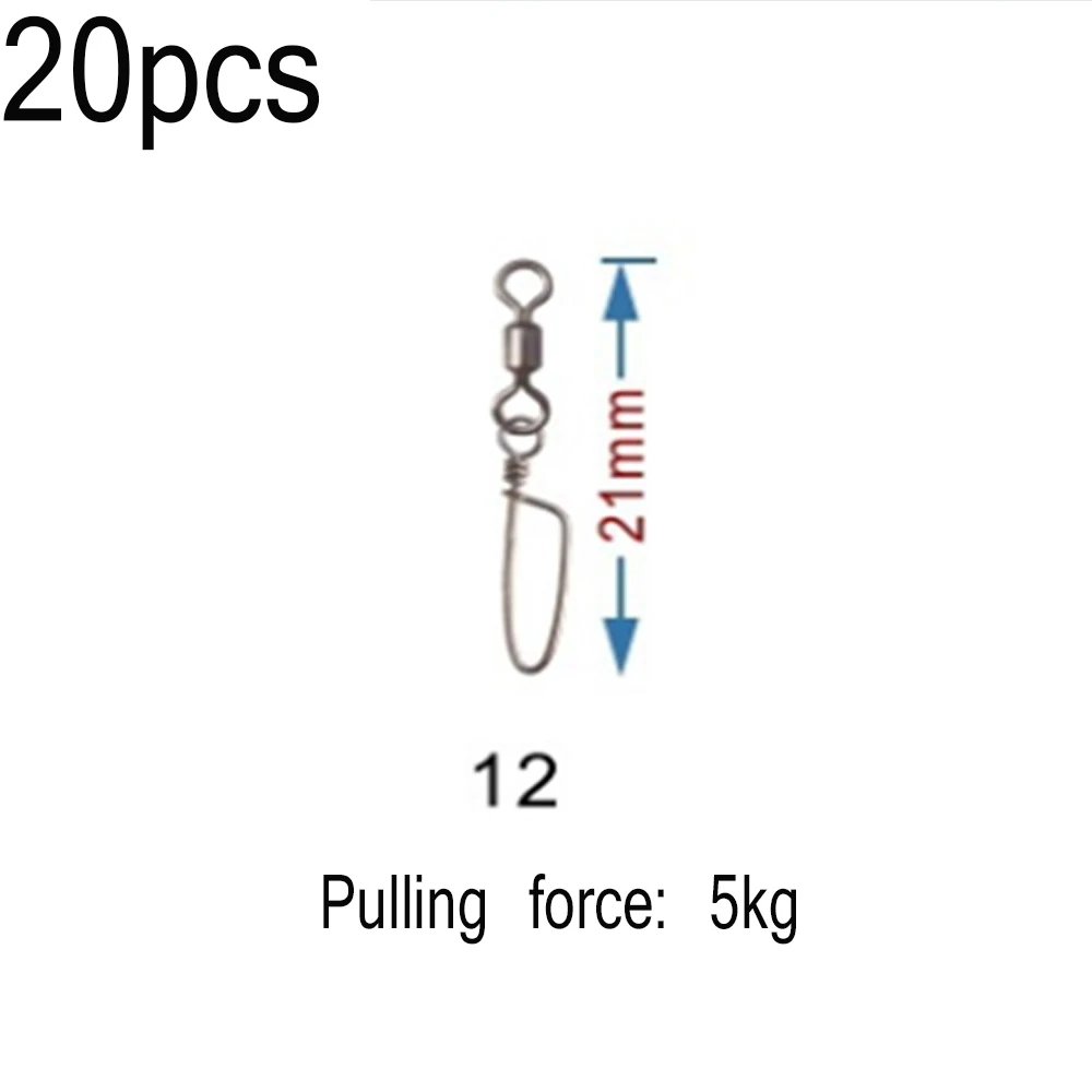 20 piezas/conector de pesca pivote de pesca giratorio, accesorios de pesca con broche negro