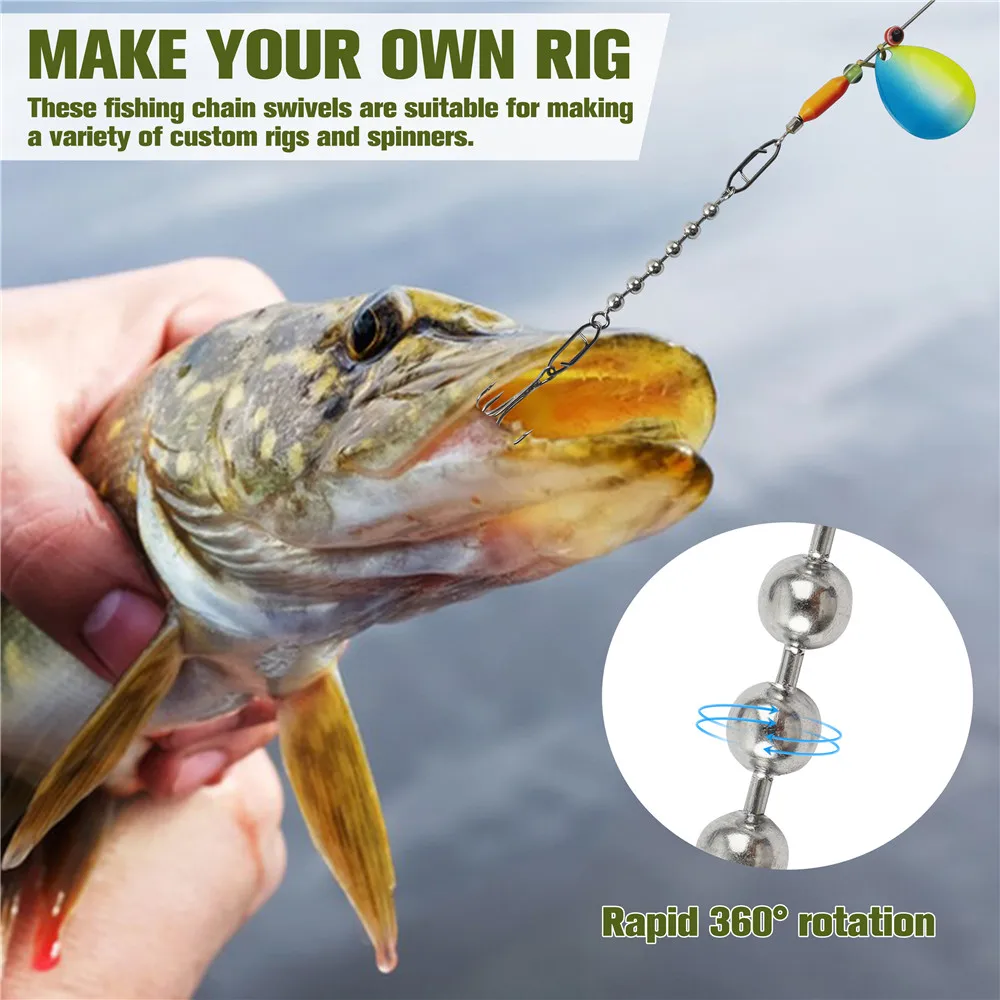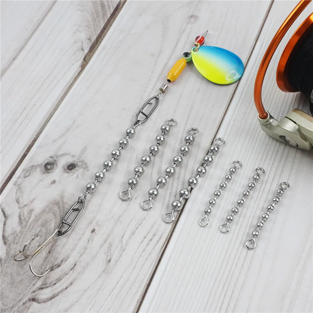 1. Los eslabones giratorios de la cadena de cuentas del equipo de pesca están hechos de acero inoxidable de alta calidad, duradero y resistente a la corrosión.