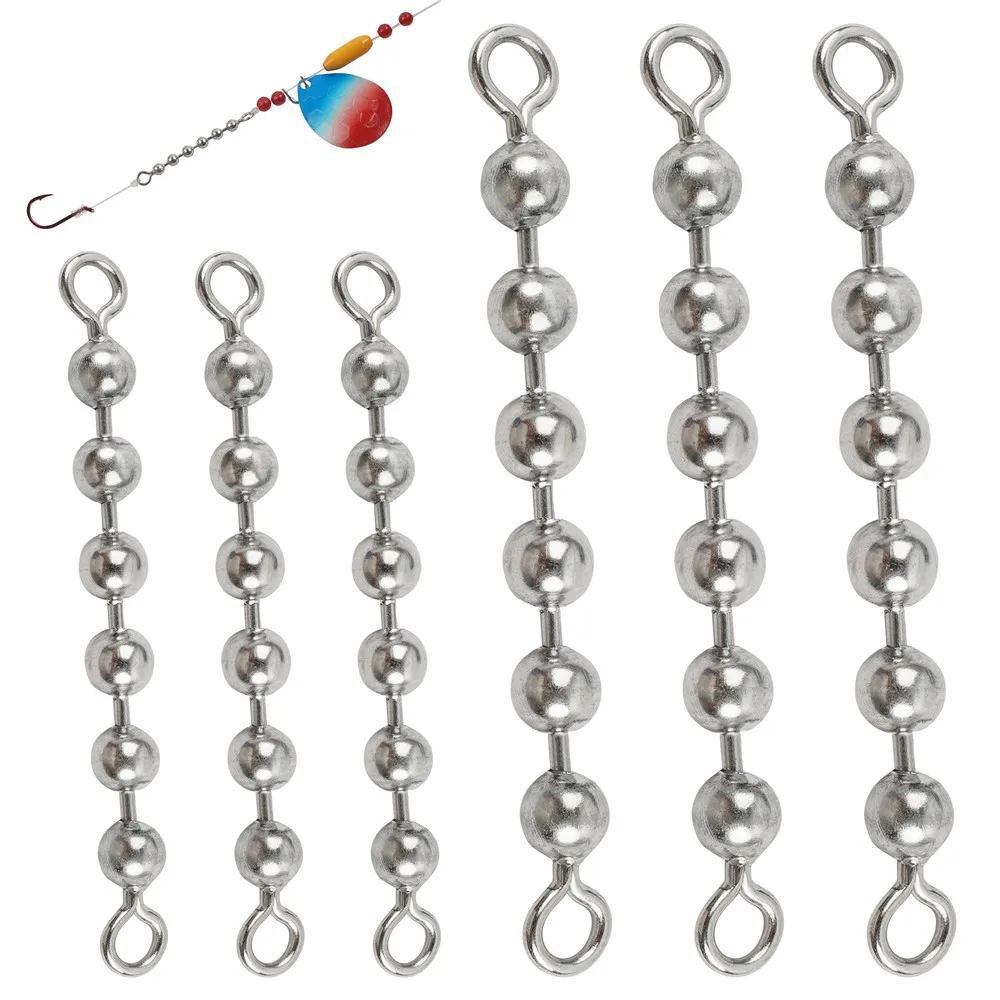 3. La cadena giratoria de cuentas puede enviar burbujas sobre el señuelo de cola para que parezca que el señuelo ha cobrado vida. Las bolas de estas cadenas giratorias de cuentas de pesca pueden chocar entre sí y hacer un ruido para atraer a los peces.