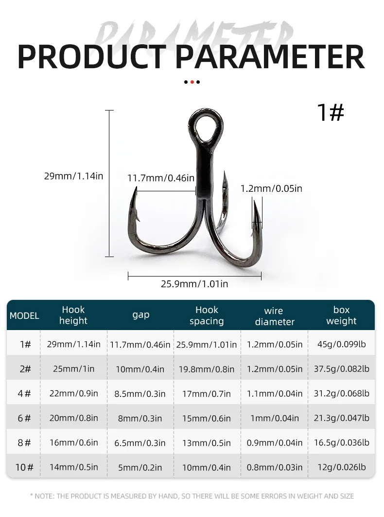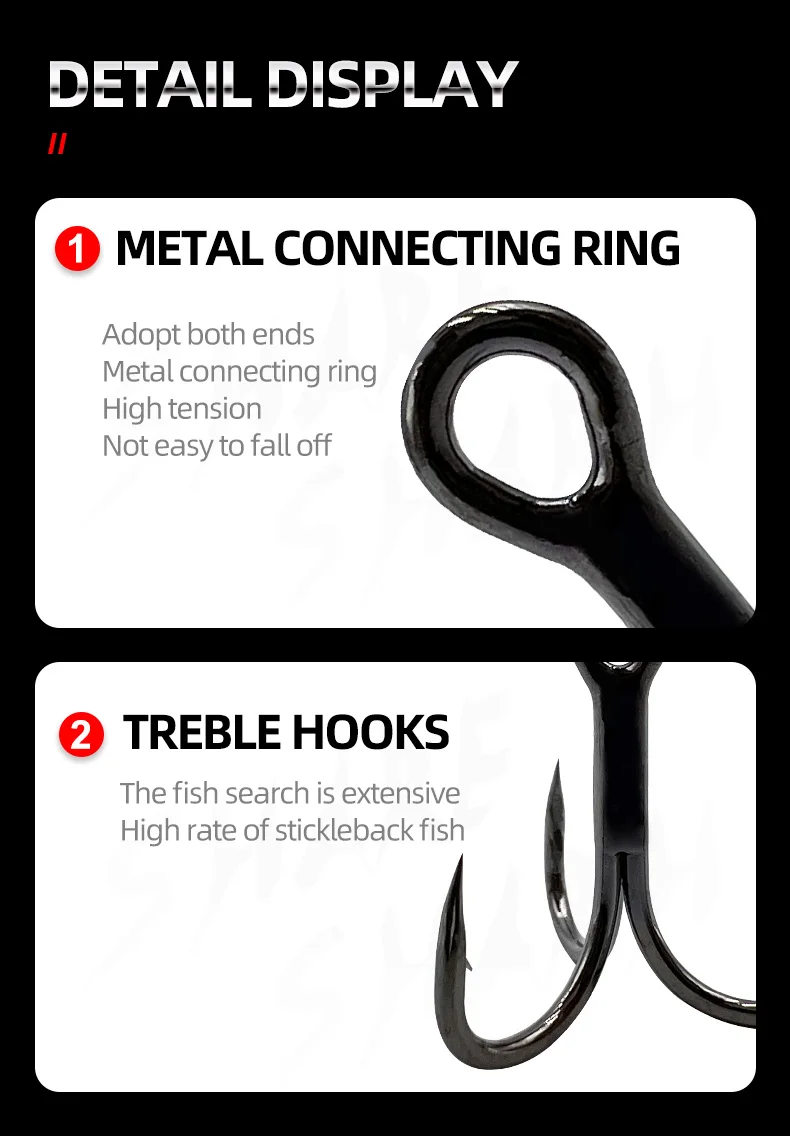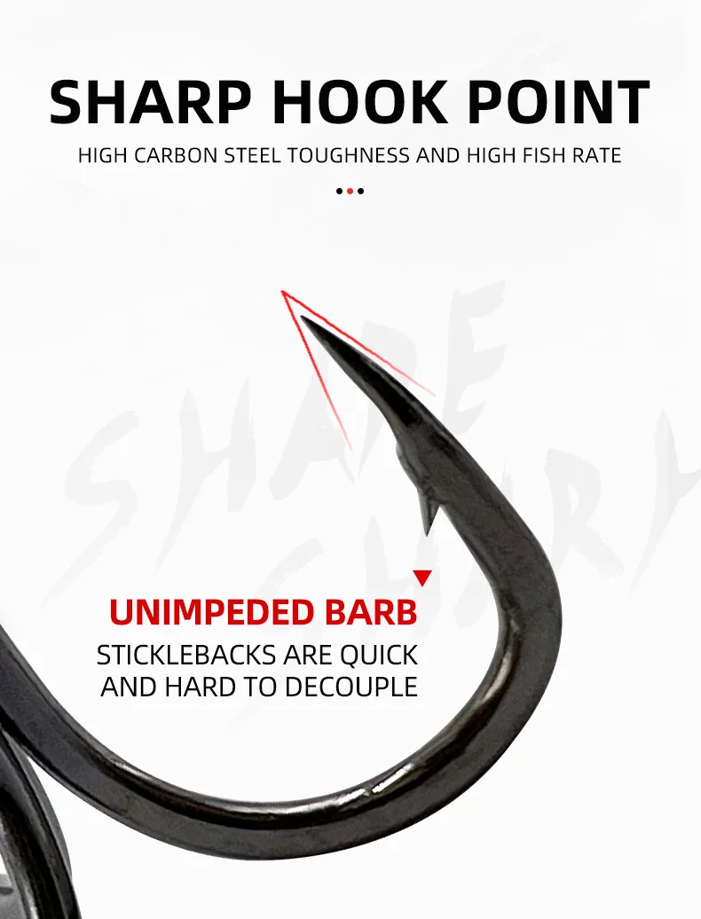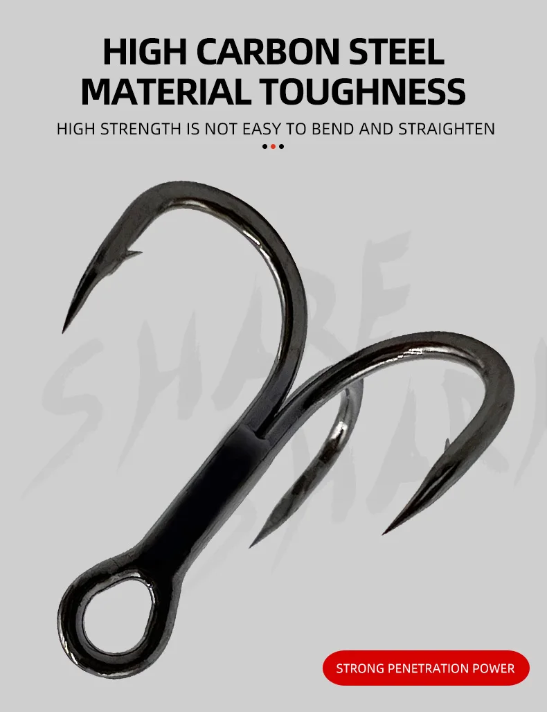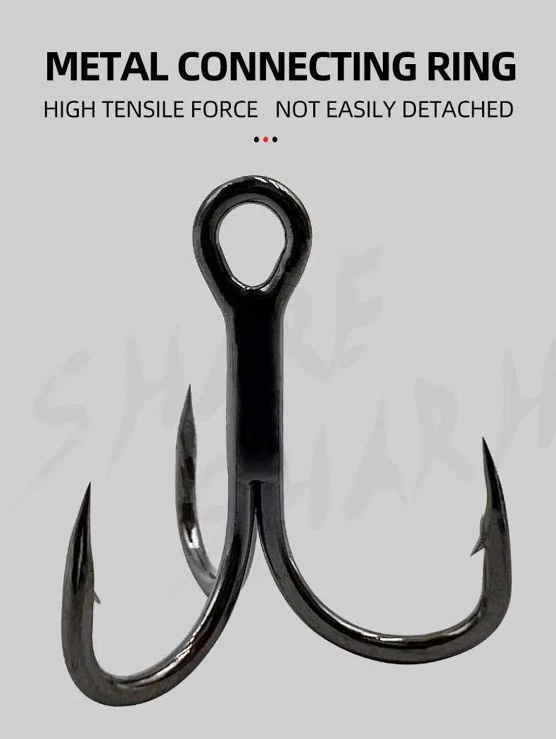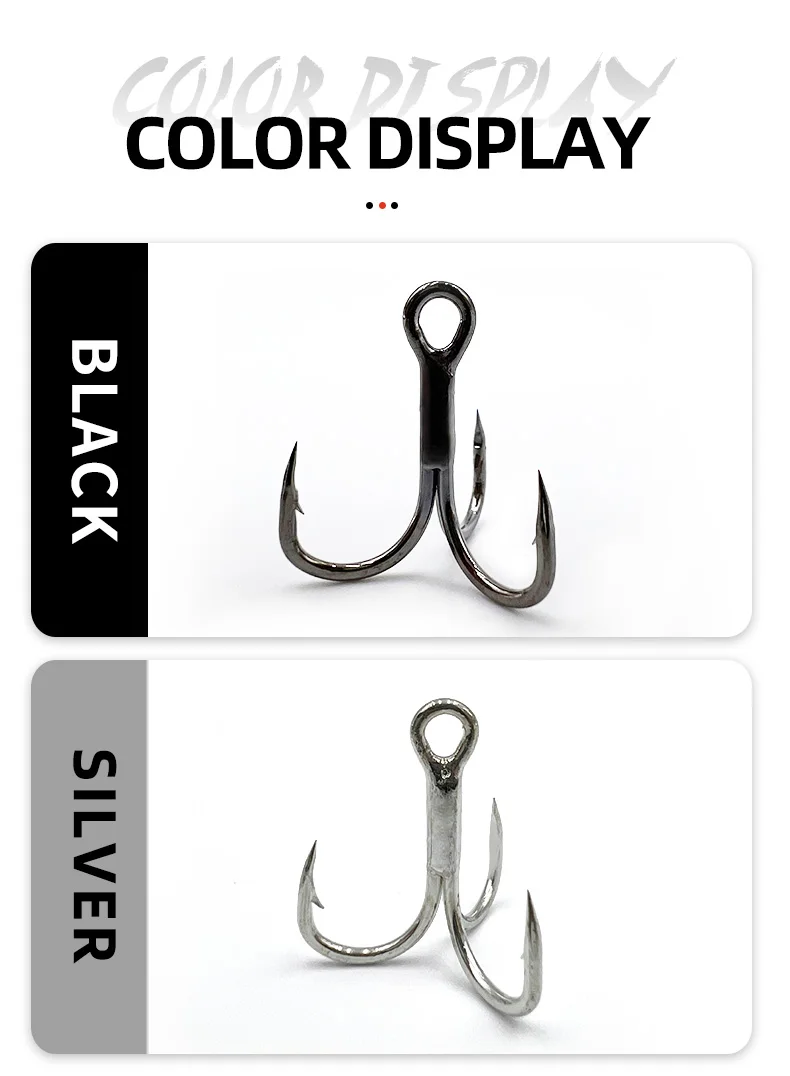 1.3X fuerte, punta de aguja, forjado, curva redonda, negro/plata 2.Punta de gancho: esmerilado especial con punta de aguja, produce una excelente penetración Soldadura: superficie de soldadura lisa y longitud idéntica para garantizar que el peso de cada gancho sea igual 3.Recubrimiento: recubrimiento antioxidante, puede reducir la vigilancia de los peces, con alta resistencia a la corrosión al agua salada 4.Composición: el mismo ángulo de tres anzuelos individuales no afectará la acción de natación del señuelo.