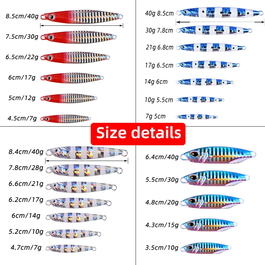 20 piezas Jigc7g de paso lento de abeja, 10g, 15g, 21g, 30g, 40g, 60g, señuelo tipo cuchara para Jigging, señuelo de pesca de agua salada brillante con gancho