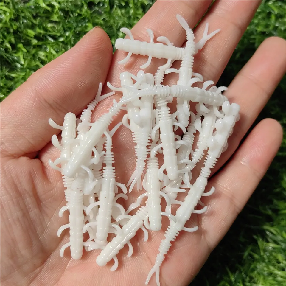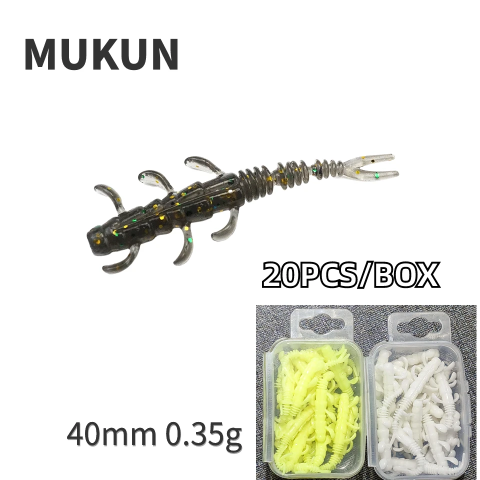 20 piezas-Mini Señuelos de Pesca de gusano suave, cebos artificiales de silicona de 0,35g/40mm, aparejos de Pesca de carpa, TPE