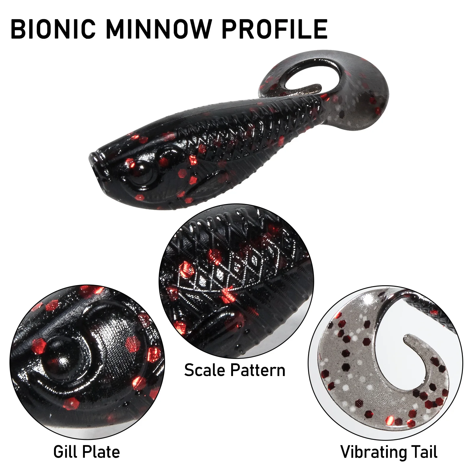 20 piezas Minnow pesca Grub plástico suave gran pez imitación polonked con cola remolino excelente cebo de Bajo excelente trabajo cebo en El agua provoca depredadores para atacar Gran cebo de color comprado en 3 colores recomiendo a todos gran cebo