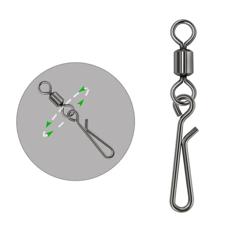 DNDYUJU 20 piezas de rodamientos de pesca de acero inoxidable giratorios de bloqueo giratorio con gancho a presión conector de anzuelo de pesca aparejos