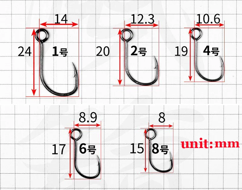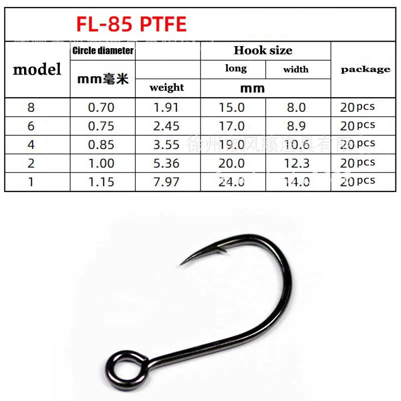 20 piezas para señuelo de pesca, anzuelo de repuesto, anzuelos individuales para señuelo de pescado, anzuelo en línea, tamaño de ojo grande 1/ 2/ 4/ 6/ 8, acero afilado con alto contenido de carbono