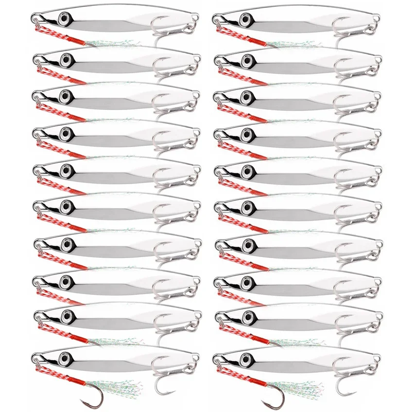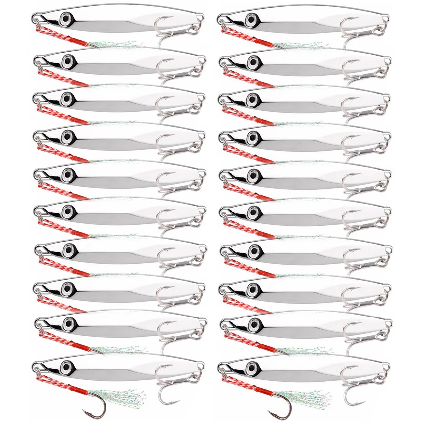 20 piezas Señuelos de Pesca de plantilla de Metal 30g 40g 60g Crankbait Jig cuchara Wobbler cebo Señuelos de Pesca de Mar Pesca plateado
