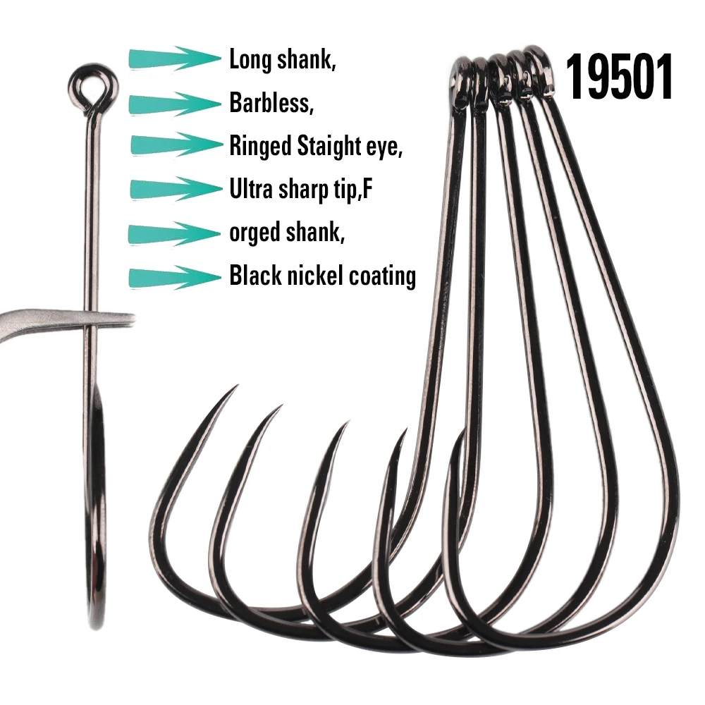 Característica: acero con alto contenido de carbono, alambre fuerte 2X, vástago corto 1X, sin burbujas, ojo recto anulado, punta ultra afilada, vástago forjado, revestimiento de níquel negro.