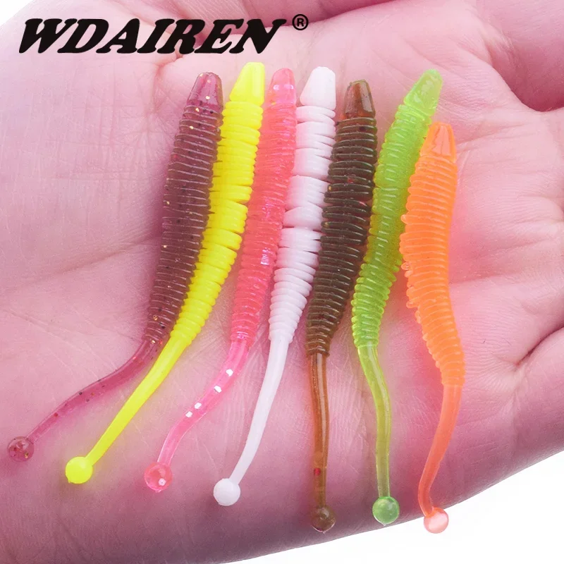 Señuelos de Pesca con olor a camarón, gusano de silicona Artificial, cebo suave, Swimbaits de depredador, aparejos de Pesca baratos, 20 Uds., 6cm y 0,6g