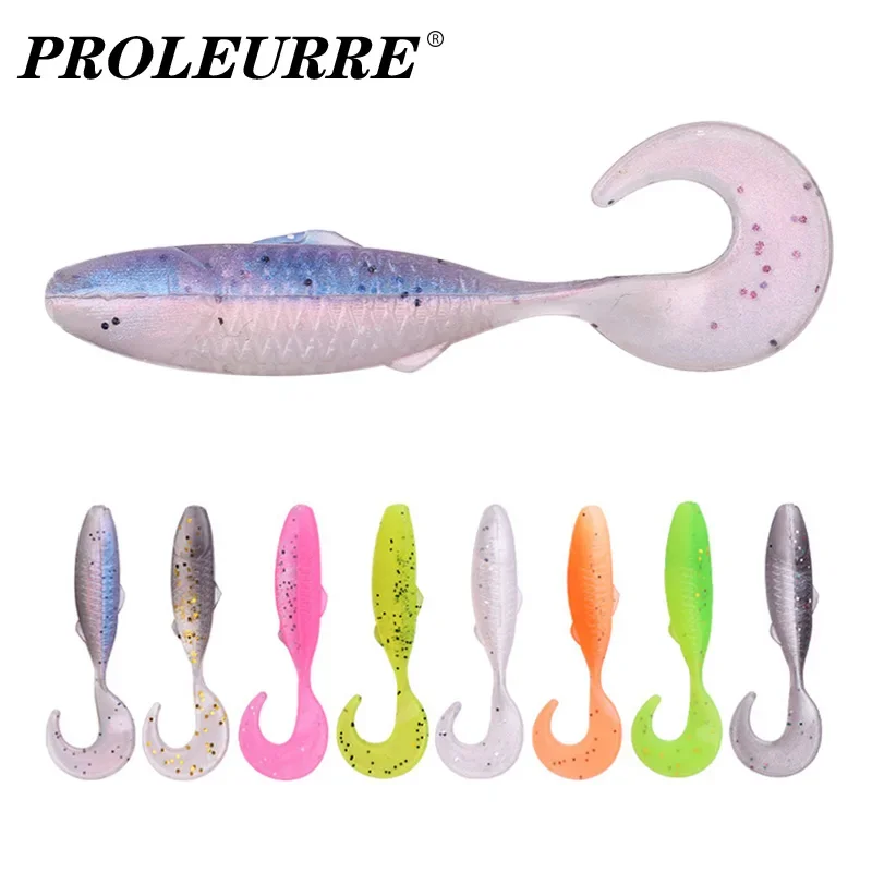 20 unids/lote Señuelos de silicona rizado gusano nadador cebo suave 47mm 0.7g Jigging Wobblers señuelo de pesca para Lucio trucha lubina aparejos de pesca