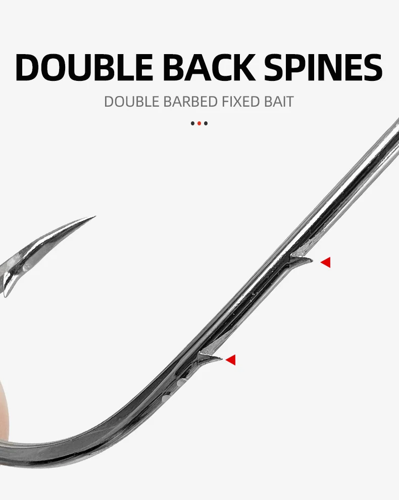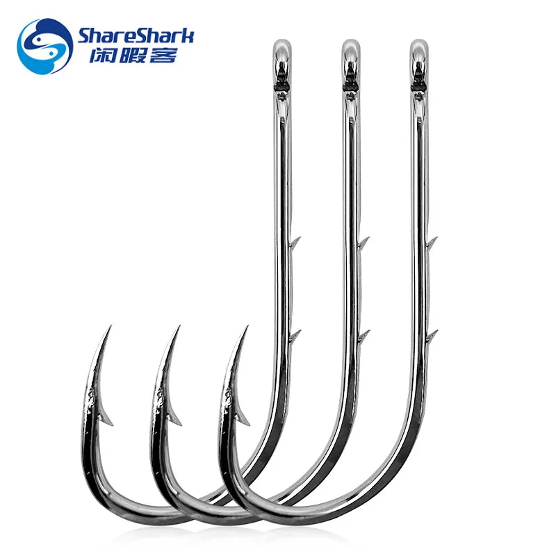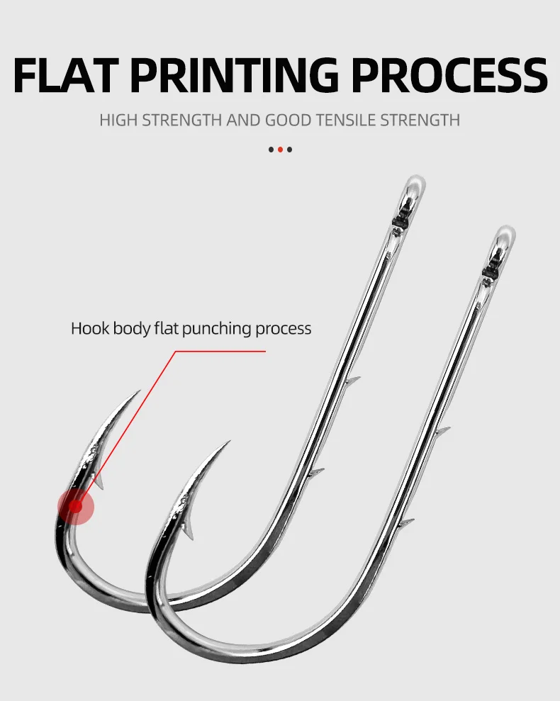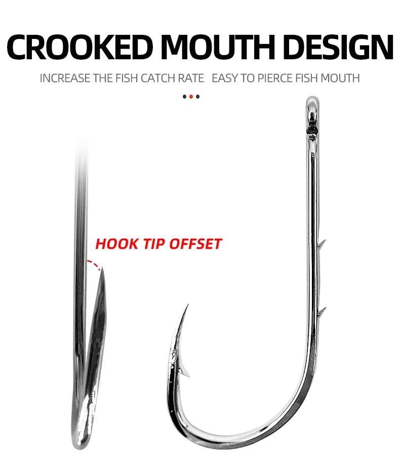 Gancho para anillo de agua de mar -Cuidadosamente forjado con 2X acero fuerte con alto contenido de carbono para proporcionar una mejor prevención de la oxidación y resistencia a la corrosión en el agua de mar y garantizar la dureza y resistencia del anzuelo.1/0-3/0 1#-12#