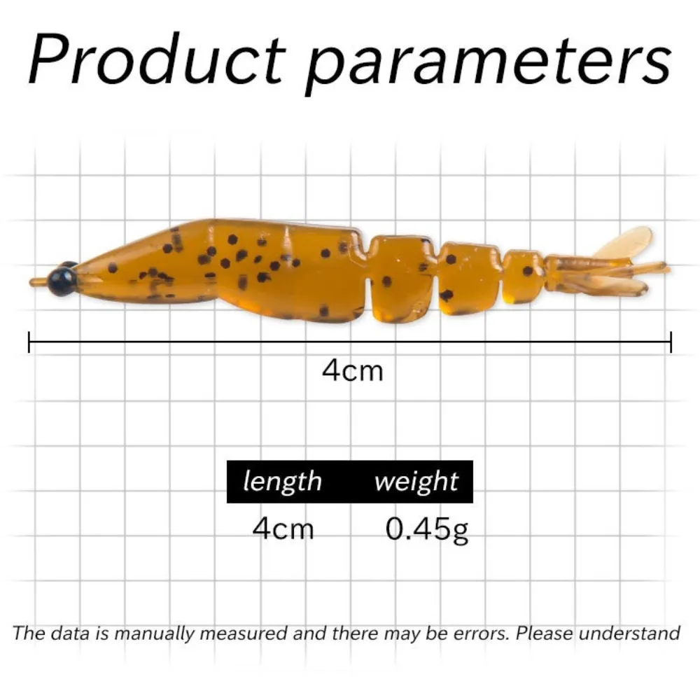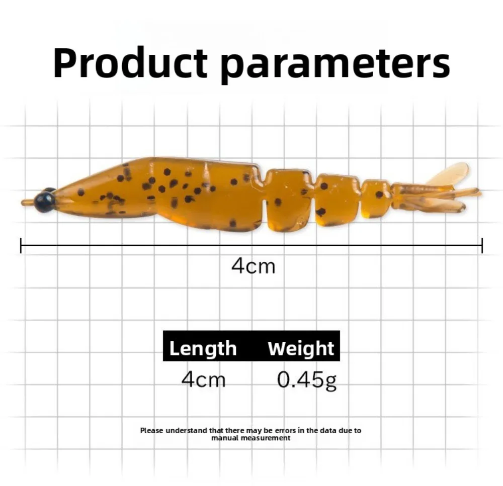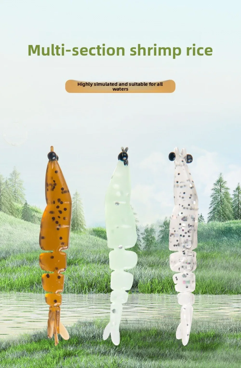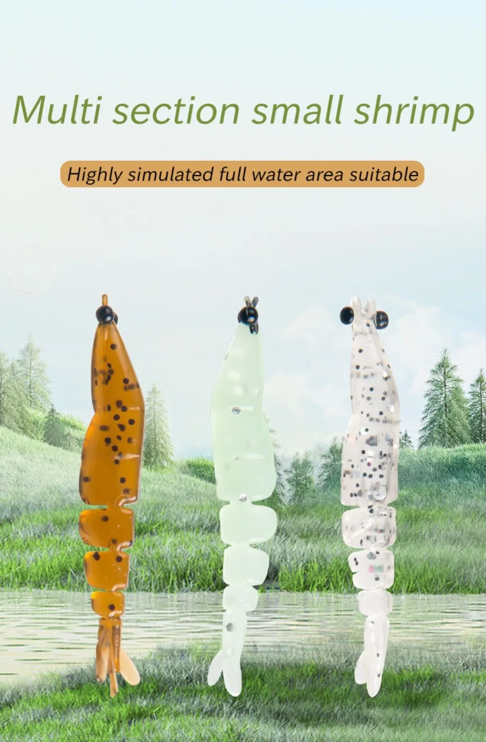 1. A brand new design using multi joint technology simulates the shape of small shrimp, ultimately forming a multi joint shrimp soft bait