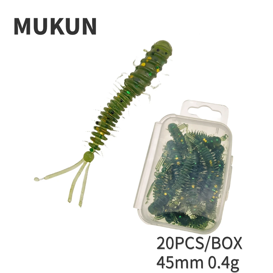 20 unids/caja cebo de silicona de gusano 45mm 0,4g cebo de goma cola recta Wobbler Kit de Señuelos de Pesca blandos con botella portátil