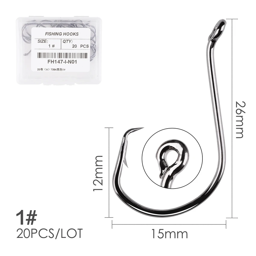 20 unids/caja pulpo deporte círculo anzuelo de pesca carpa anzuelo Jig grandes anzuelos de mar con púas anzuelos de pesca de acero alto en carbono 6 # -7/0 #
