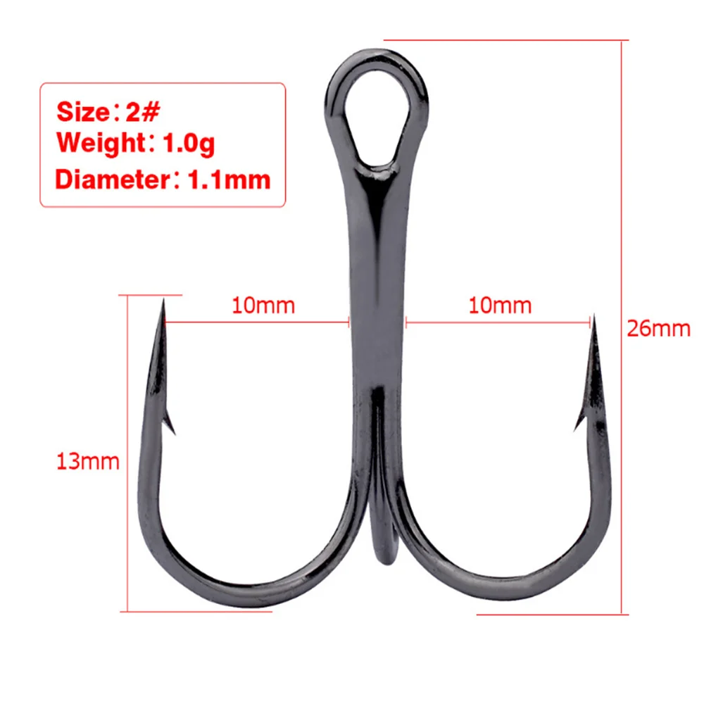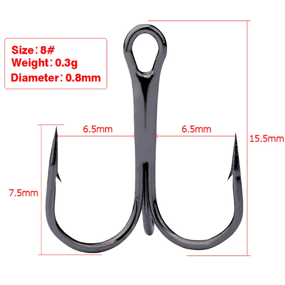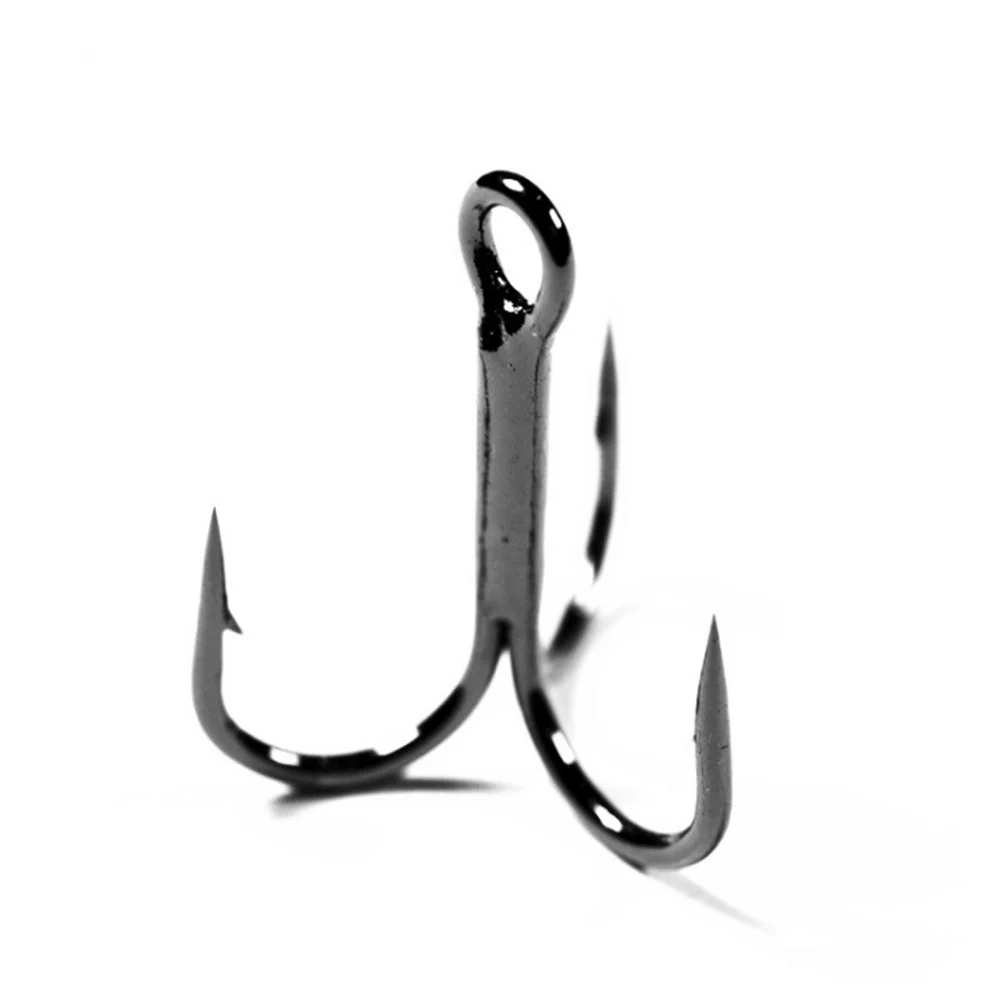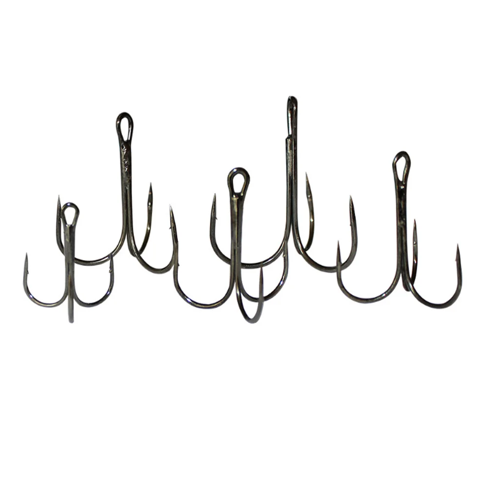 20 unids/lote anzuelos de pesca negros afilados de acero rico en carbono anzuelo triple volcado aparejos redondos doblados pesca de carpa lubina de agua salada