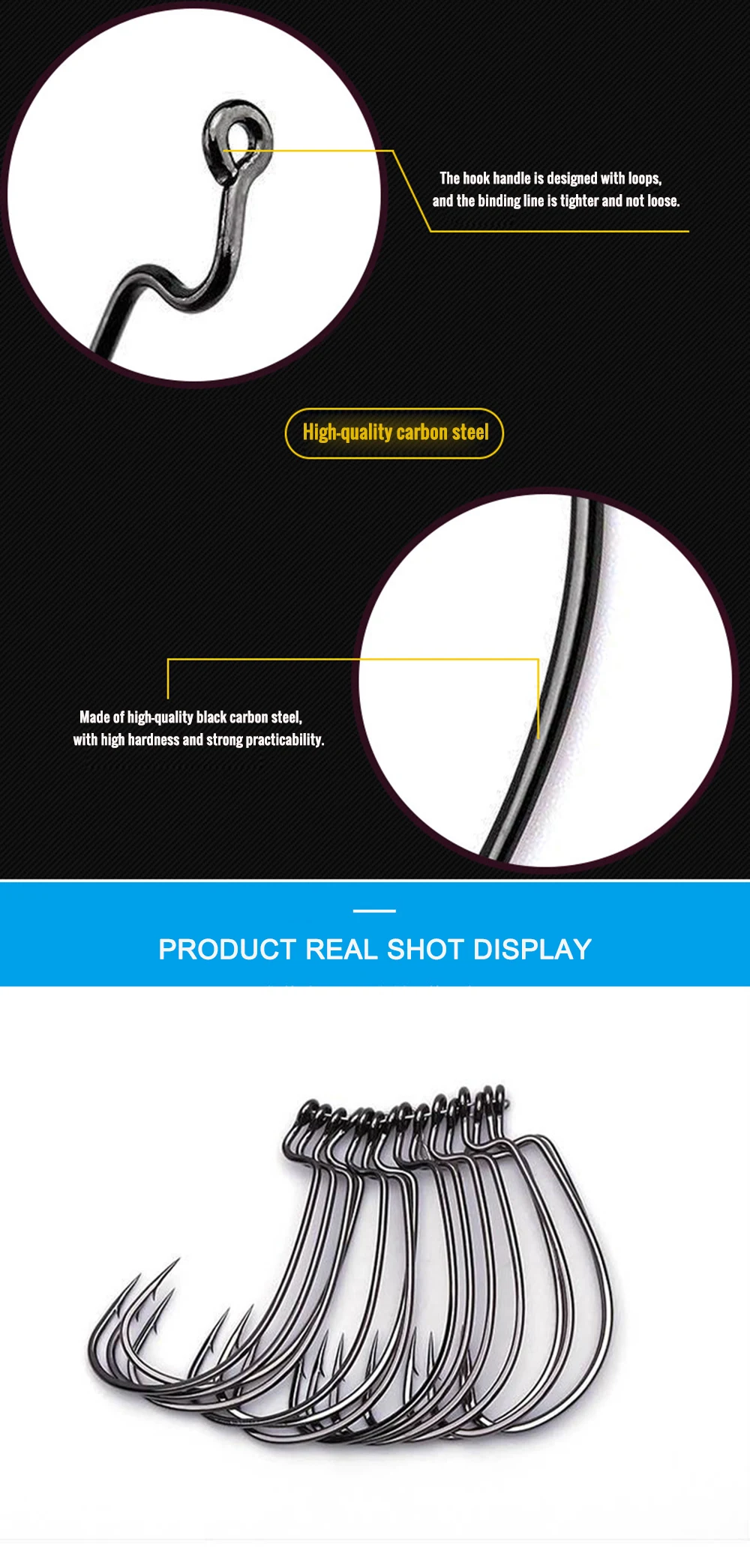 2. La parte del anillo del mango del anzuelo es simétrica y el arco es suave, por lo que no rayará la línea al capturar peces.