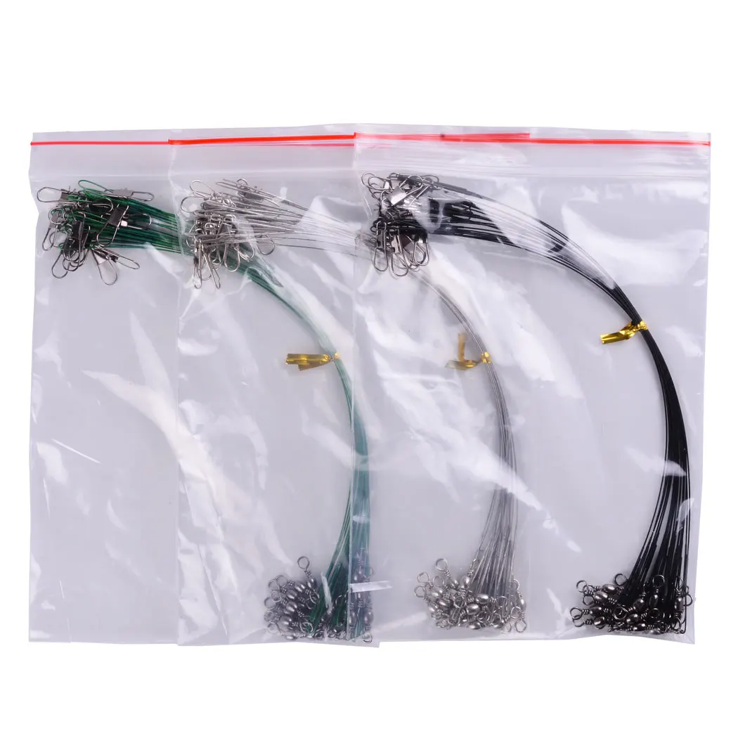 20 unid/lote líder de alambre de acero con hilo de pescar giratorio anti-mordeduras 15/20/24/30cm accesorio de pesca 3 colores correa de núcleo alta