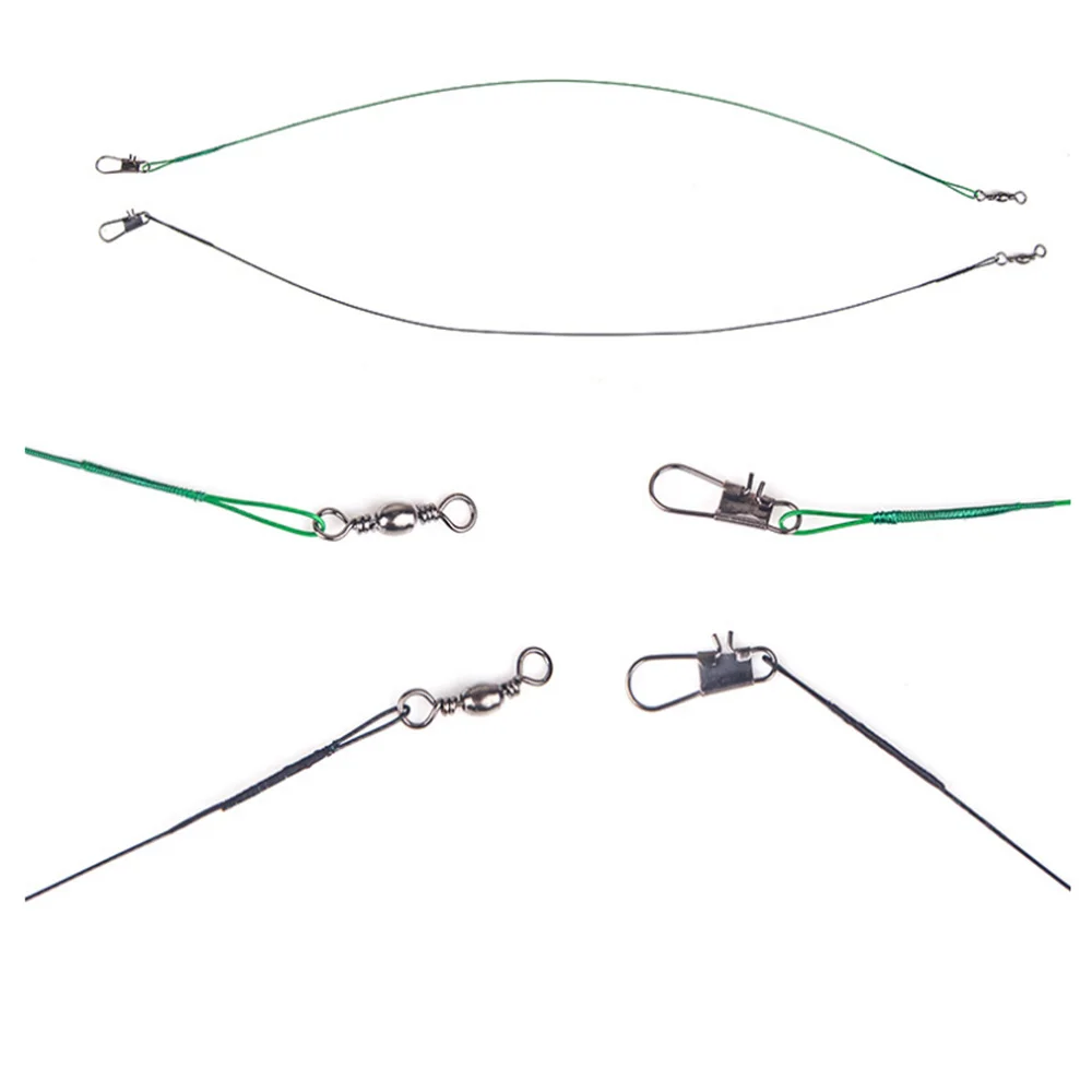 20 unids/lote línea de Pesca de acero antimordida 15cm-30cm líder de alambre de acero con plomo de Pesca giratorio accesorios de alambre de rastreo Pesca
