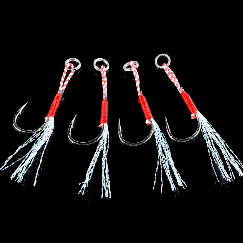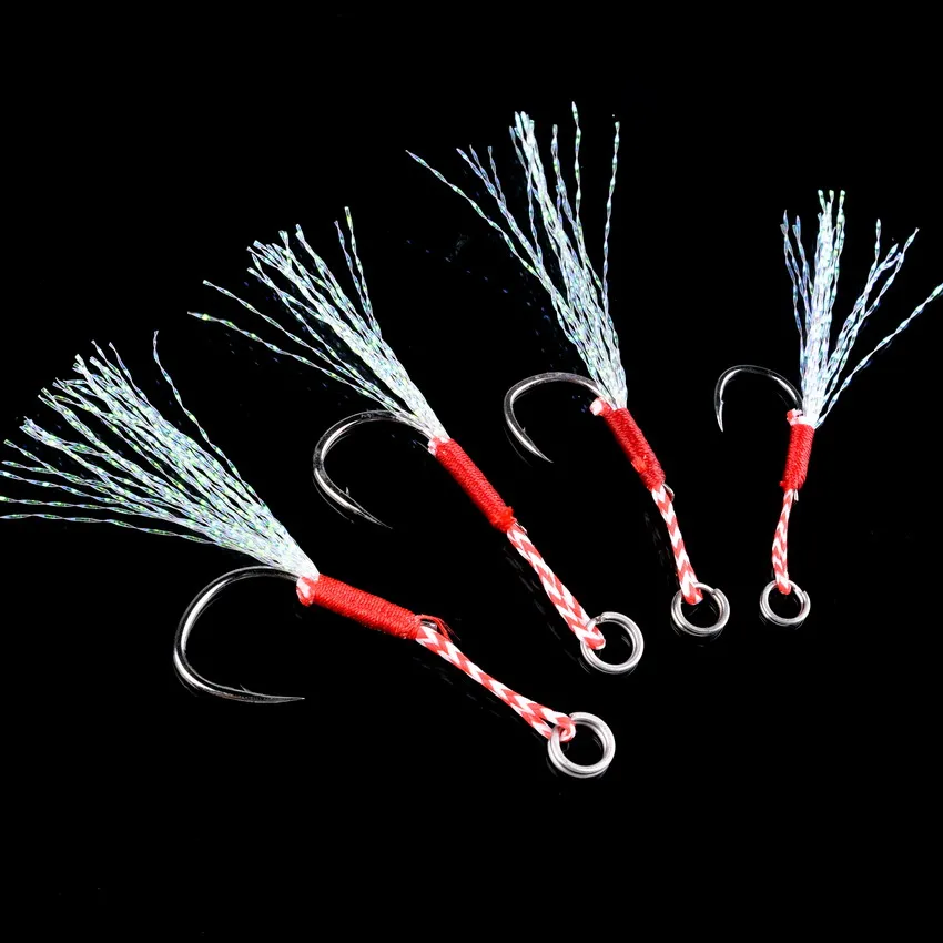 20 unids/lote señuelo de Pesca Jigging lento plantillas de Pesca fundidas anzuelo de asistencia con púas anzuelos individuales hilo pluma Pesca acero alto en carbono