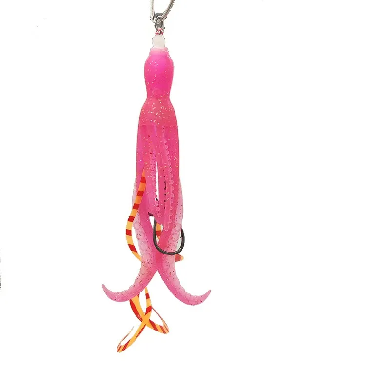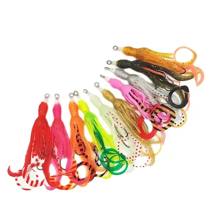 20 unids/lote, señuelo suave de pesca, falda de calamar de pulpo UV con anzuelo de asistencia, aparejos de pesca de pargo, cebos de señuelo de Jigging