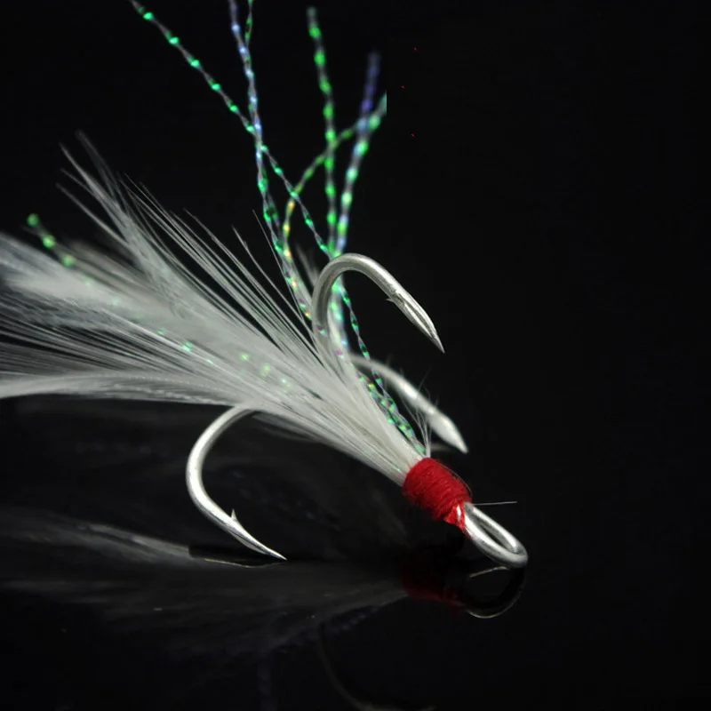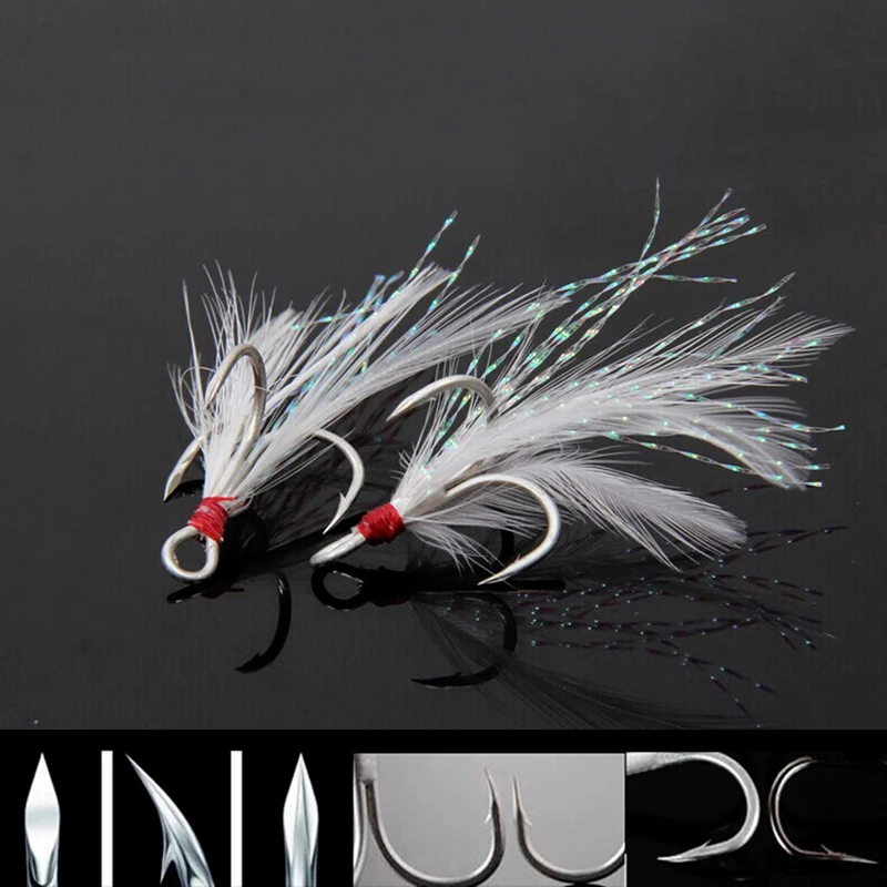 200 anzuelos triples con plumas, anzuelos de púas con ranura de acero rico en carbono, señuelo de agua salada marina, accesorios de Pesca, aparejos de Pesca