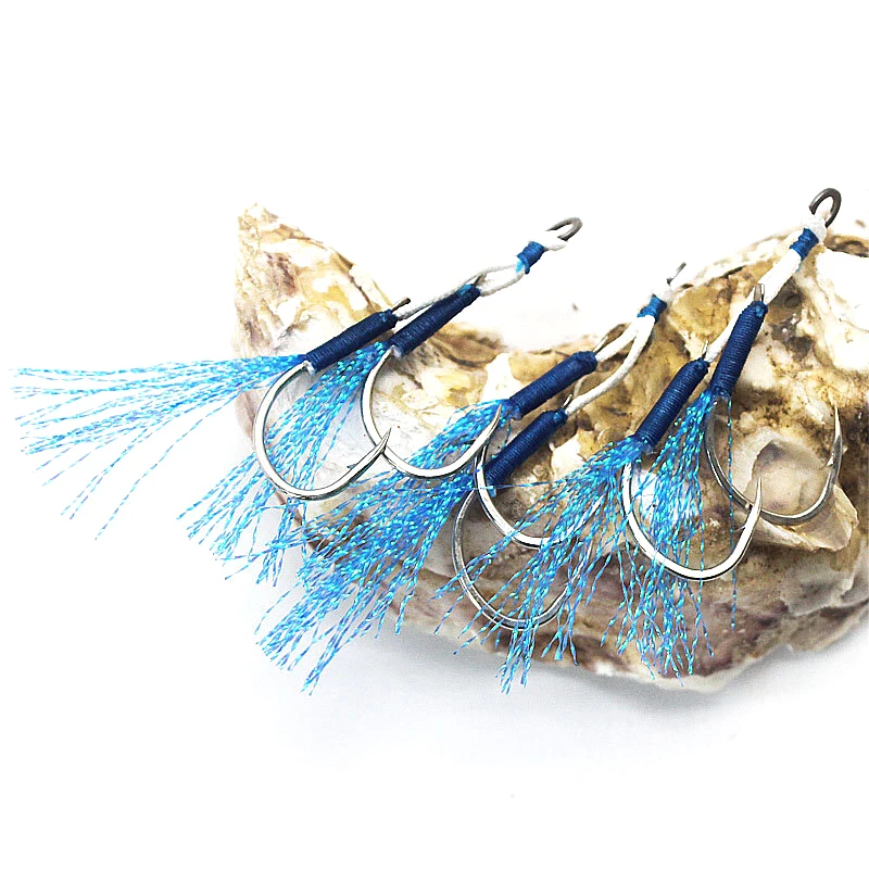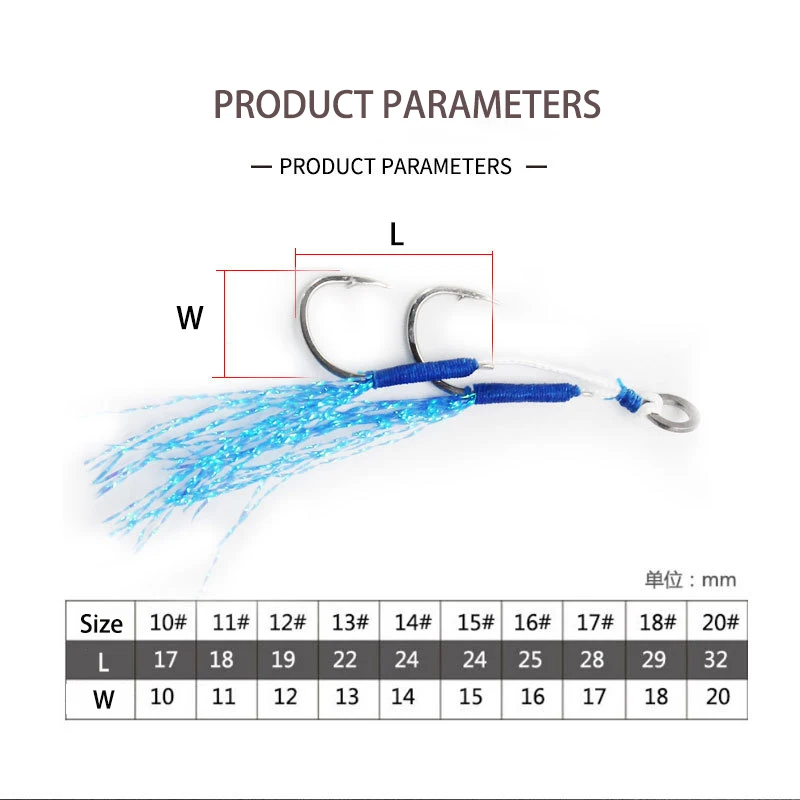 200 pares de anzuelos con placa de hierro, anzuelos dobles, anzuelos anticorrosión para sangre, esturión con púas, barco, curricán, accesorios de pesca en el mar