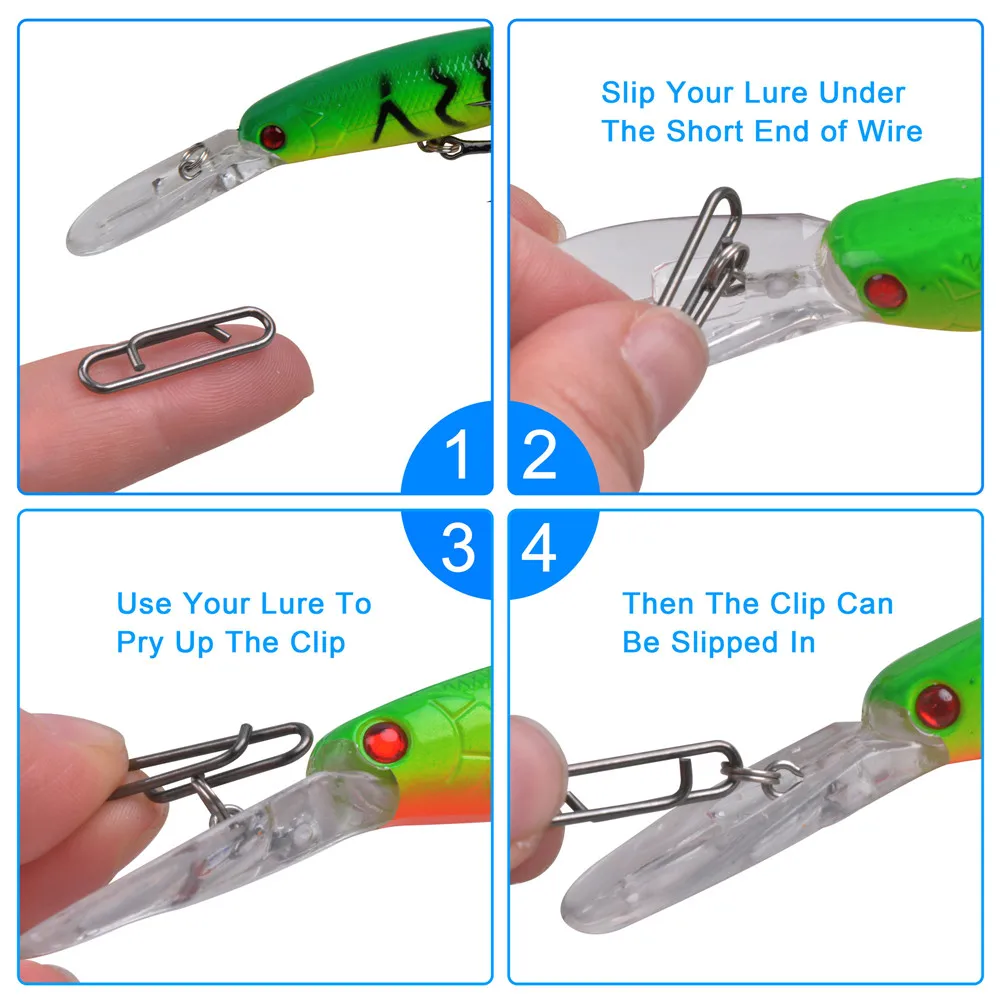 200 unids/caja Clips de alimentación broches rápidos conector de pesca Clips de velocidad 26LB-121LB accesorios de broches de señuelo de cambio rápido