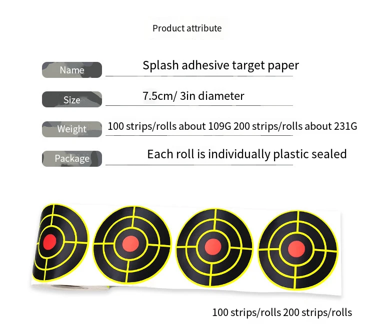 • 7.6cm Splatter Splash Amp Reactive Practice Training Hunting Stickers :The 7.6cm splatter splash amp reactive practice training hunting stickers are designed to challenge your shooting skills.