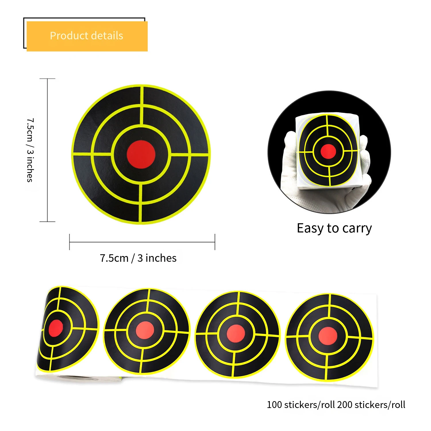 • 200Pcs of Self-Adhesive Shooting Target Stickers :Get 200 pieces of self-adhesive shooting target stickers that are perfect for practicing and training.
