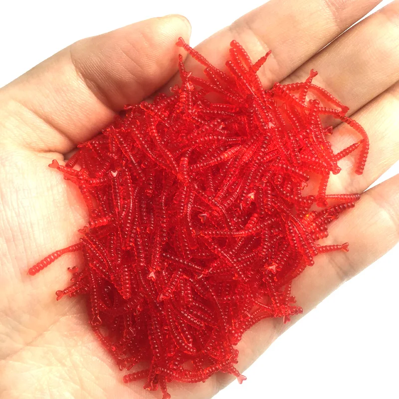 200pcs/Lot Fishy Smell Red Worm Soft Silicone Bait Shrimp Flavor Additives Fishing Lures Artificial Lure Carp Bass Isca Tackle