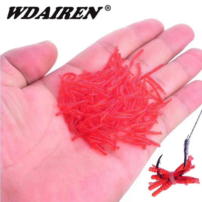 200 unids/lote pesca gusanos rojos cebos blandos olor a camarón aditivo silicona simulación Artificial lombrices de tierra lubina aparejos de carpa