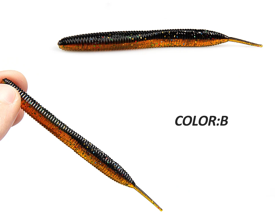 2019 nuevo gusano recto supercontinente de cola de aguja ahora caliente 100mm/10 Uds cebo de silicona de doble Color