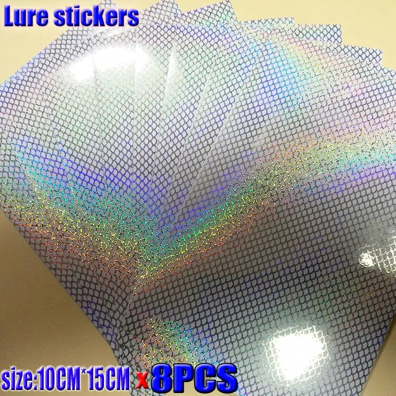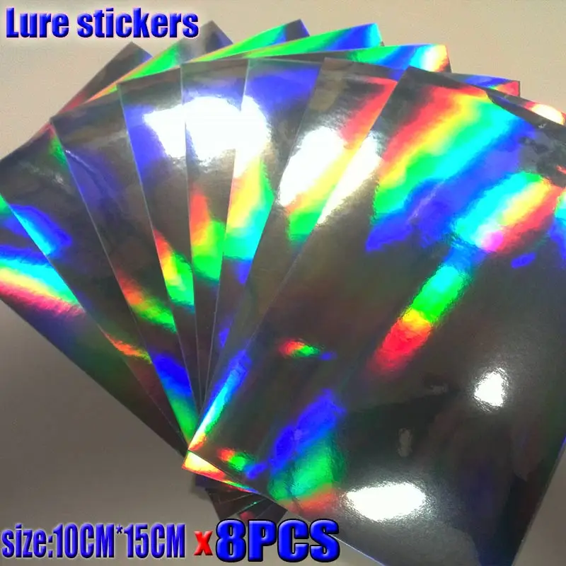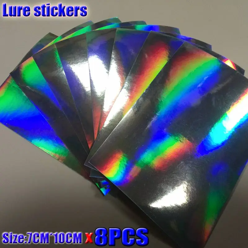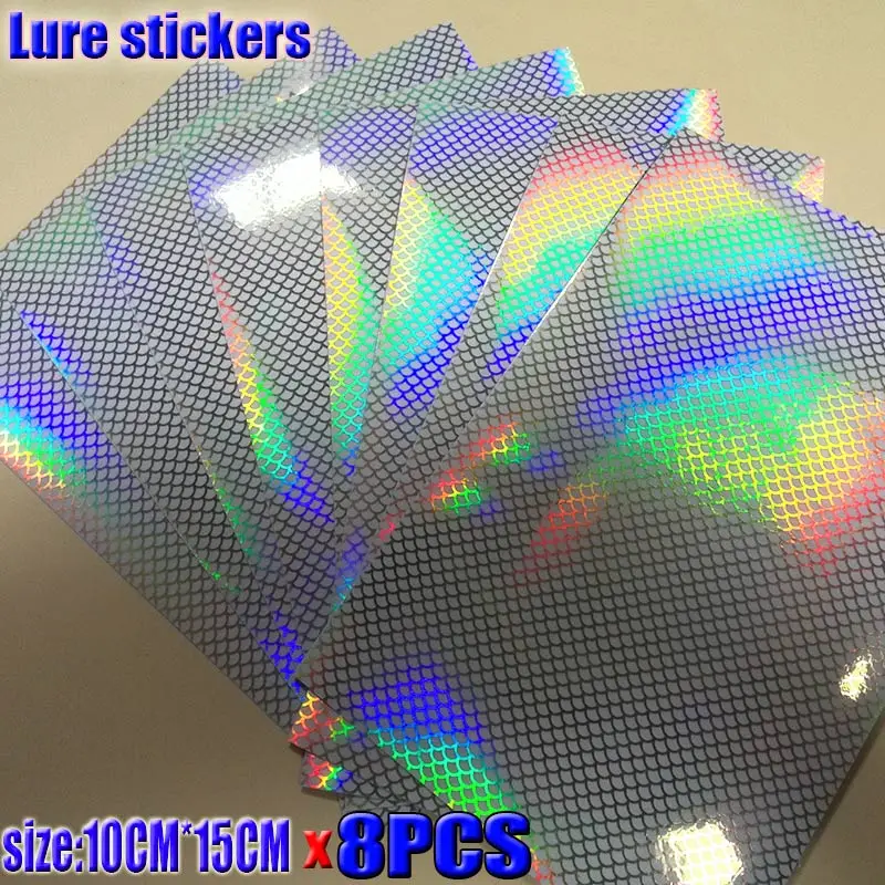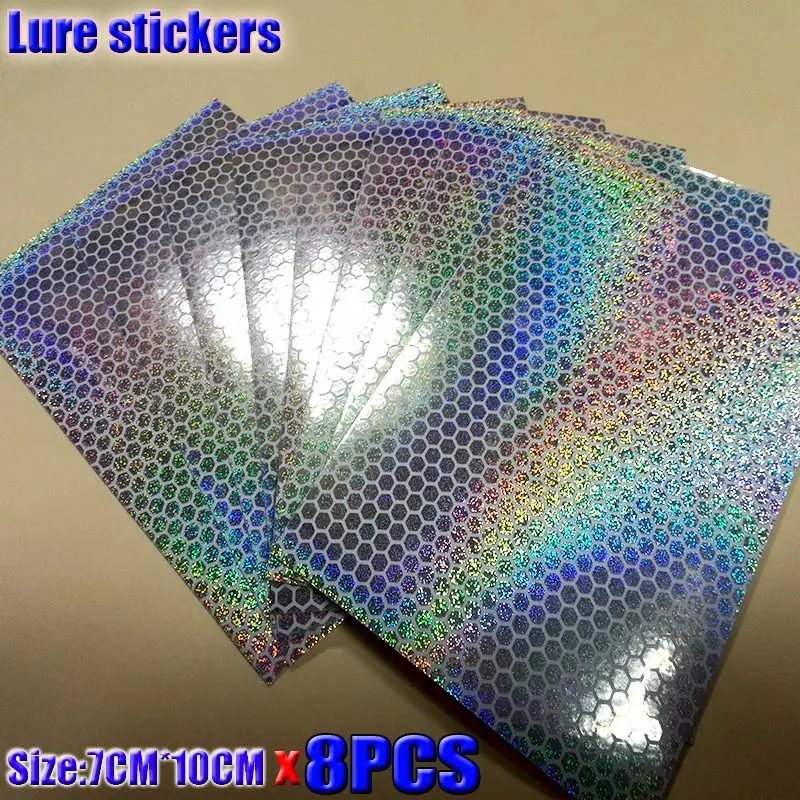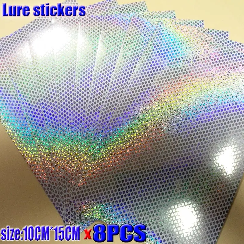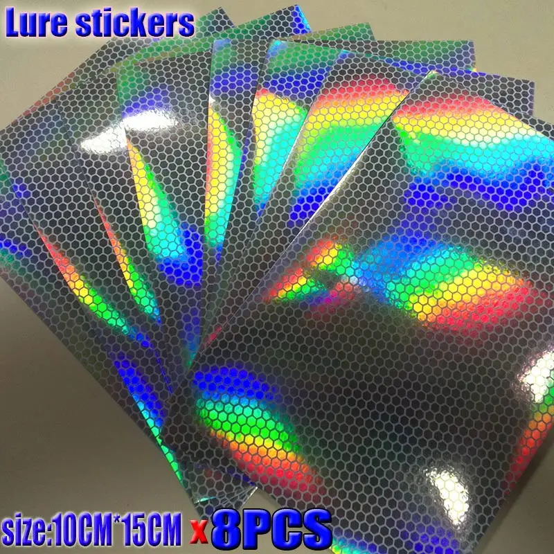 2022 pegatina de señuelo de pesca caliente, holográfica, 7 tipos de color que usted elija 8 papeles/lote tamaño: 73mm x 100mm o 100mm * 150mm