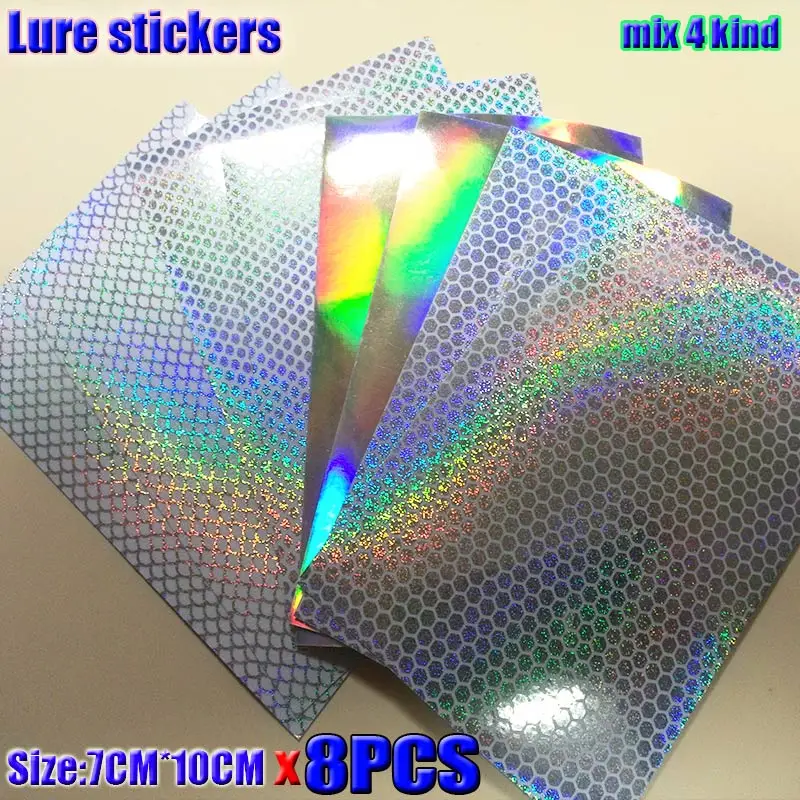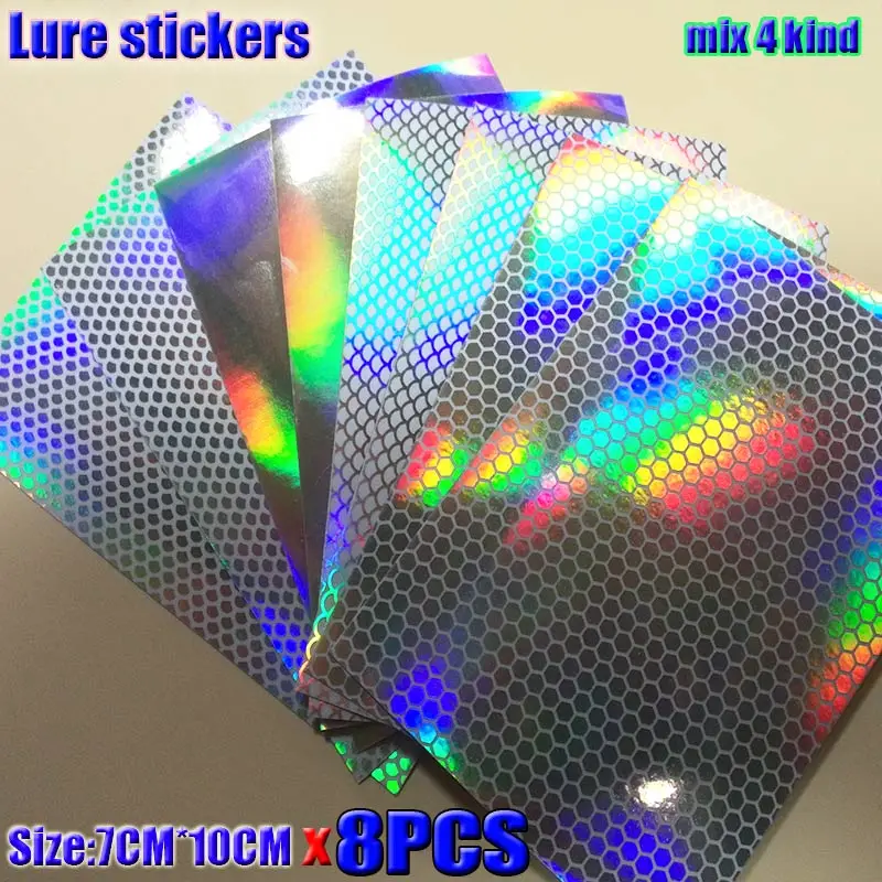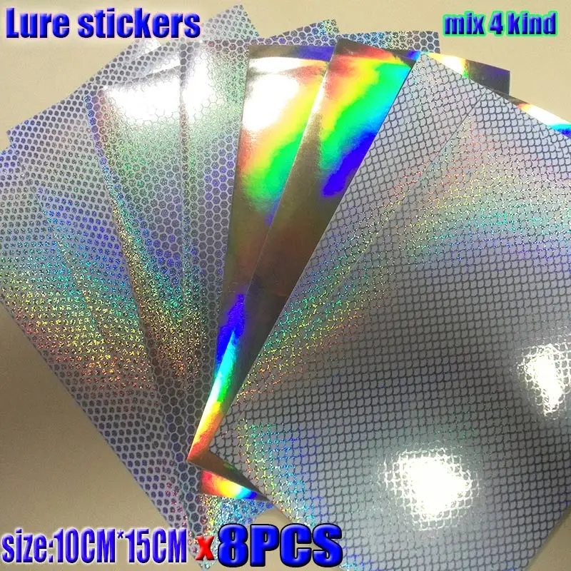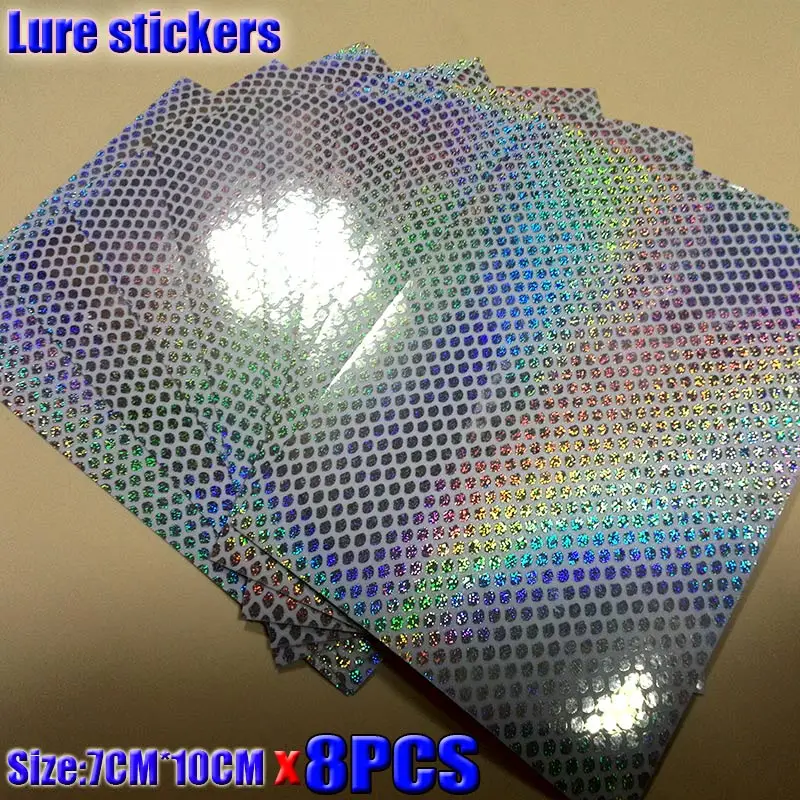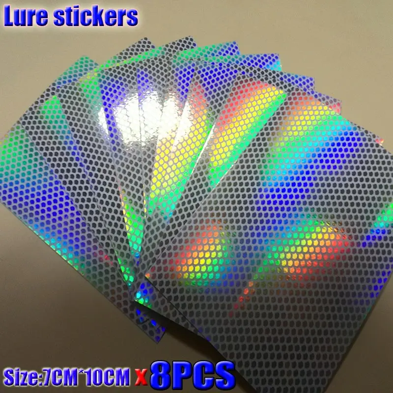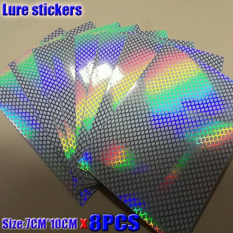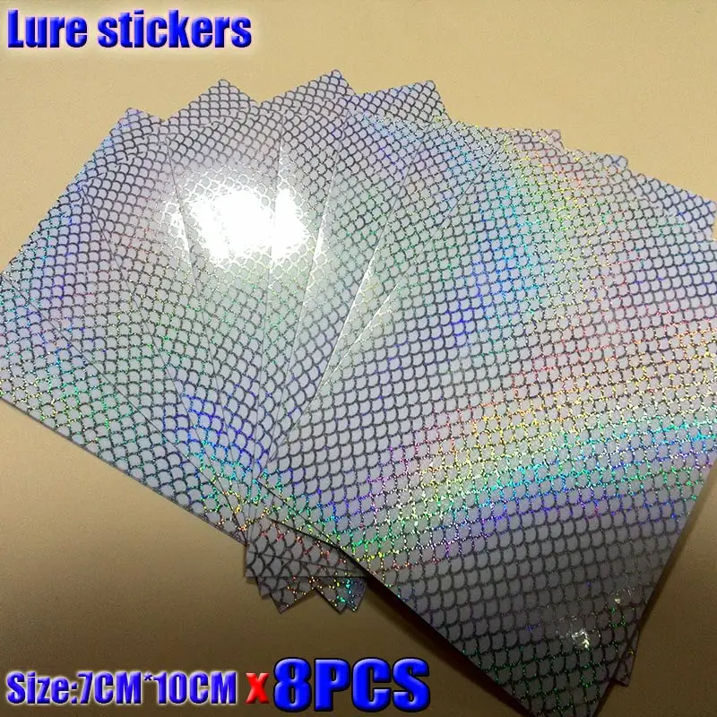 2022 pegatina de señuelo de pesca caliente, holográfica, 7 tipos de color que usted elija 8 papeles/lote tamaño: 73mm x 100mm o 100mm * 150mm