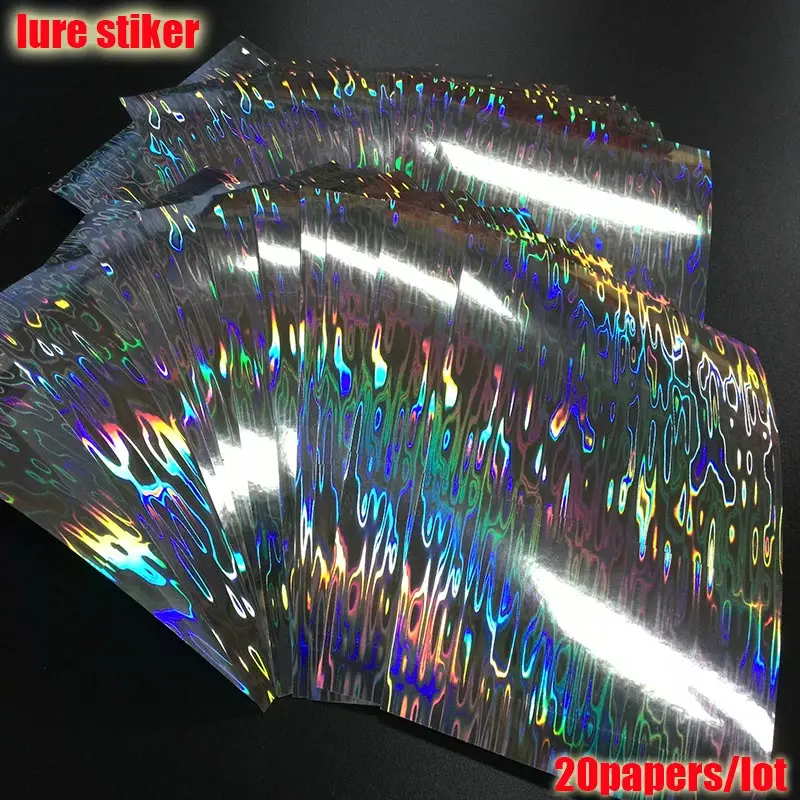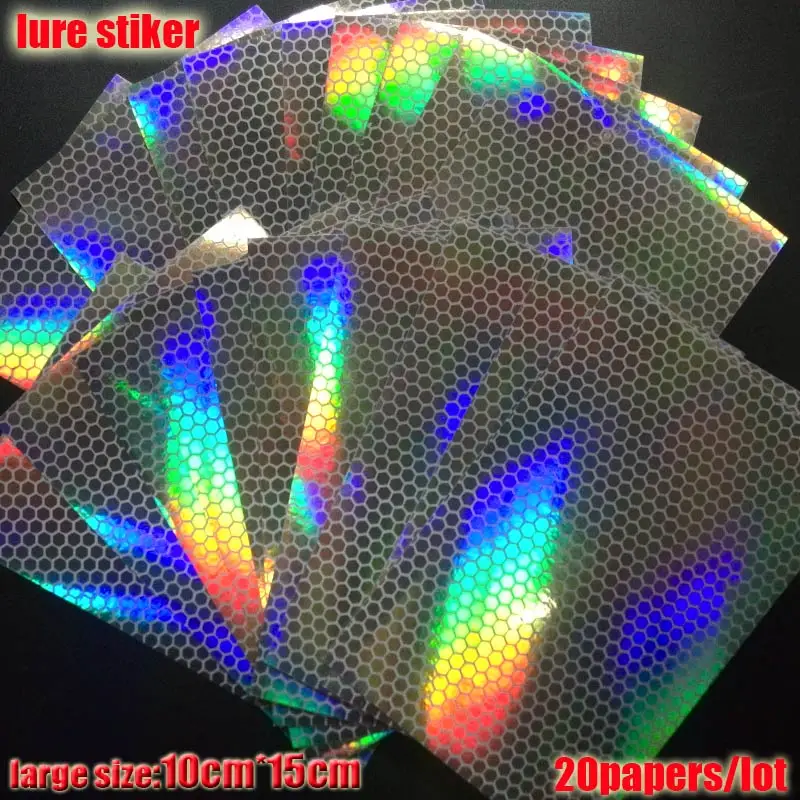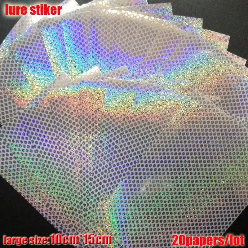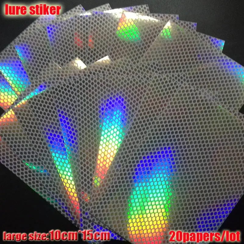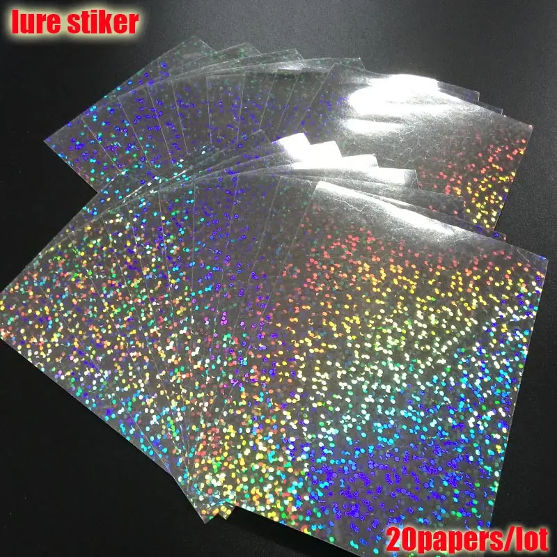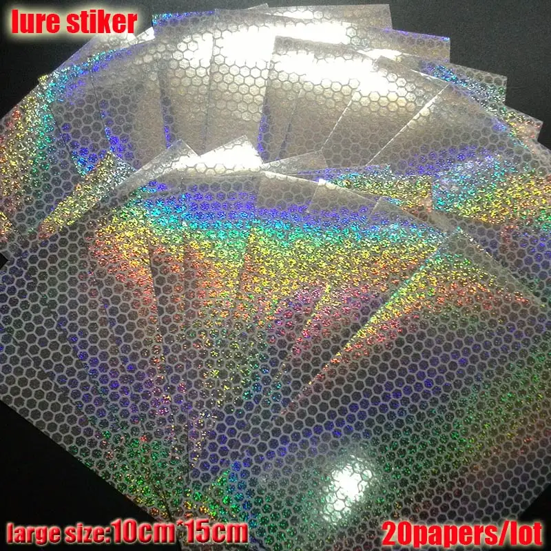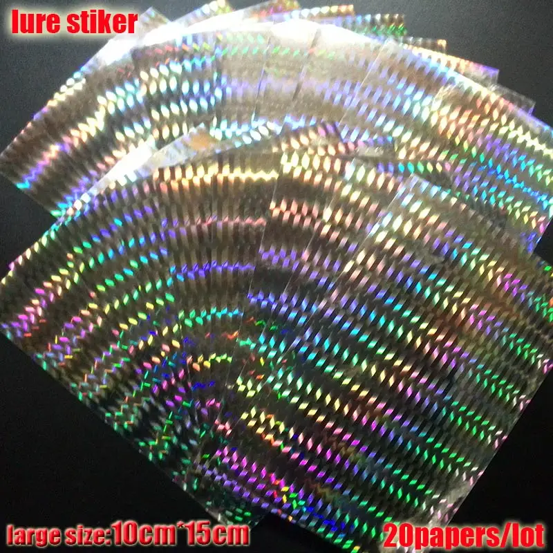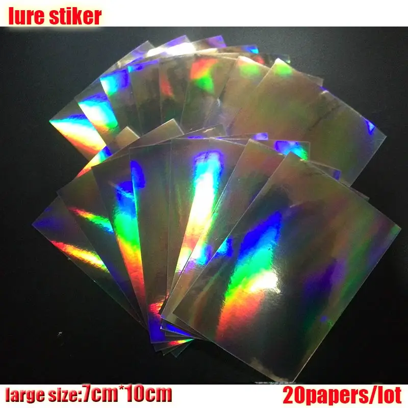 2023 nueva pegatina de señuelo de pesca, holográfica, 4 tipos de colores que usted elija 20 papeles/lote tamaño: 73mm x 100mm o 100mm * 150mm