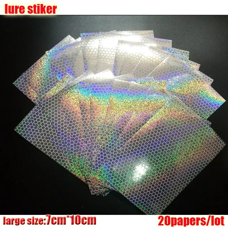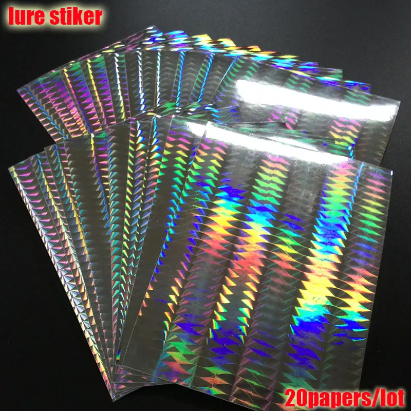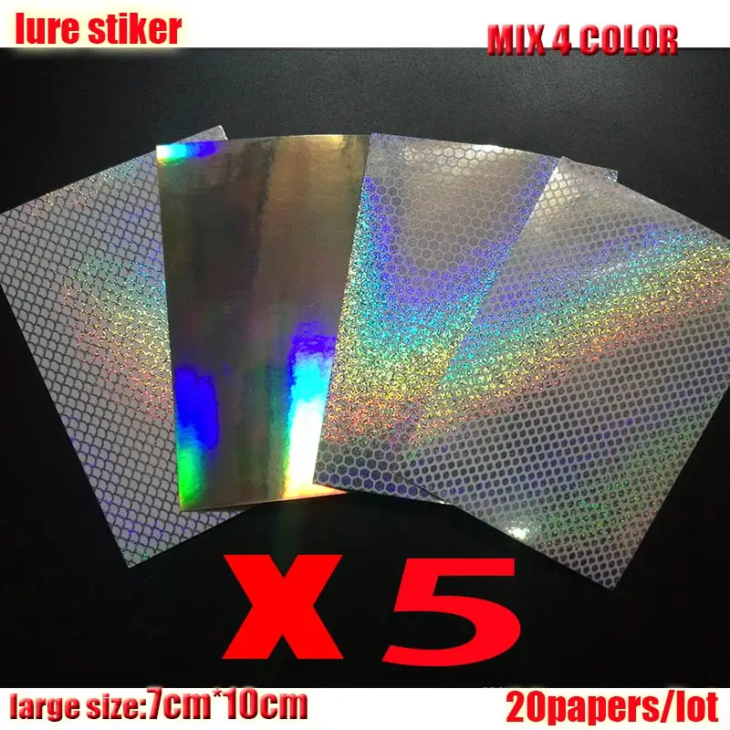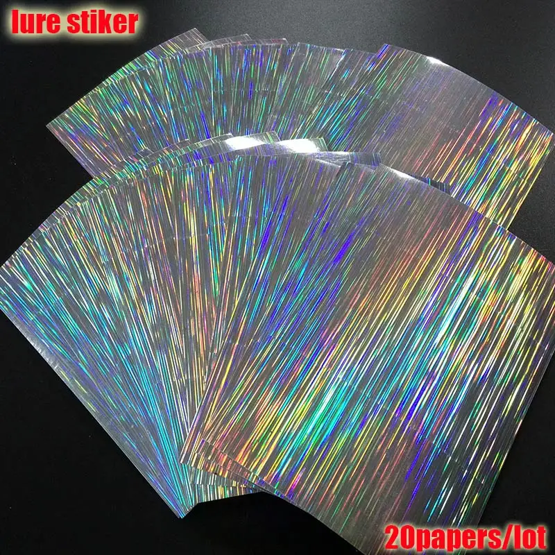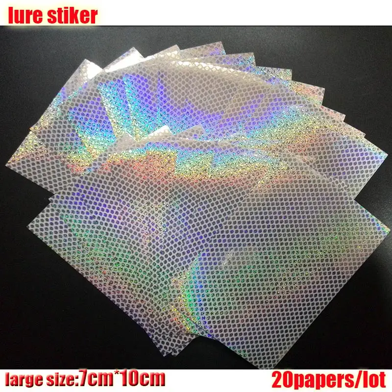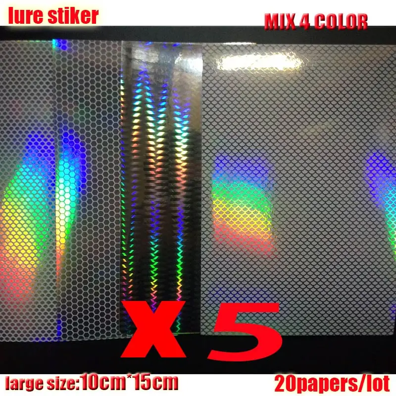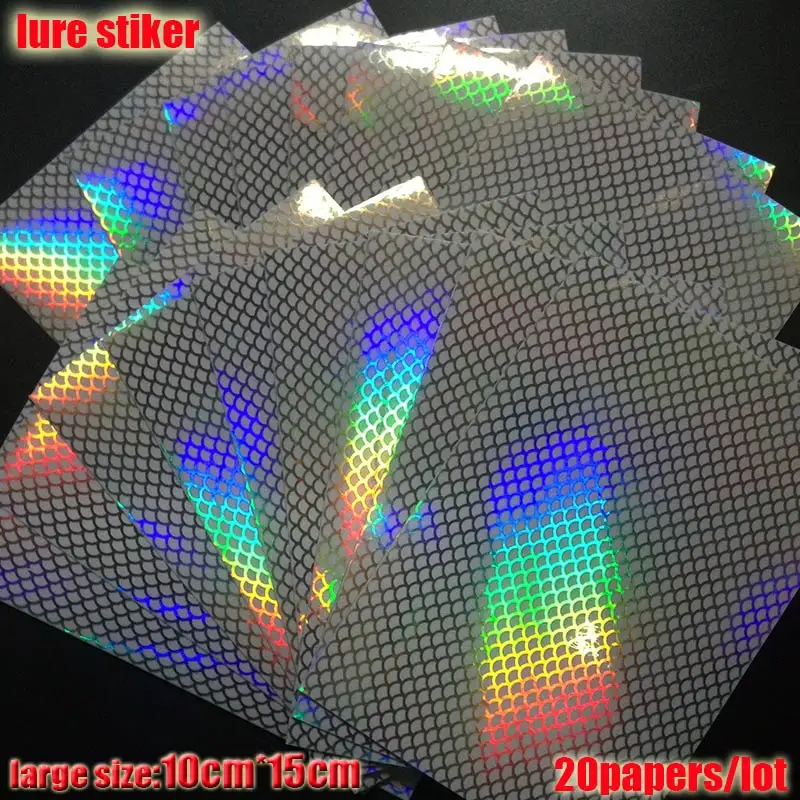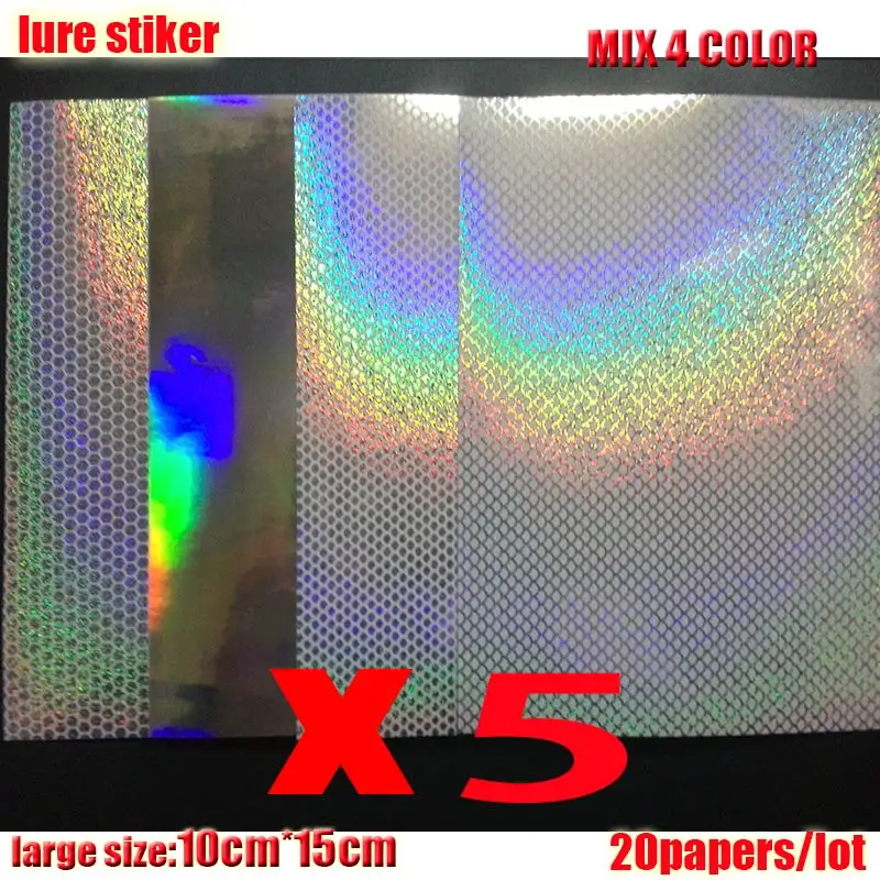 2023 nueva pegatina de señuelo de pesca, holográfica, 4 tipos de colores que usted elija 20 papeles/lote tamaño: 73mm x 100mm o 100mm * 150mm