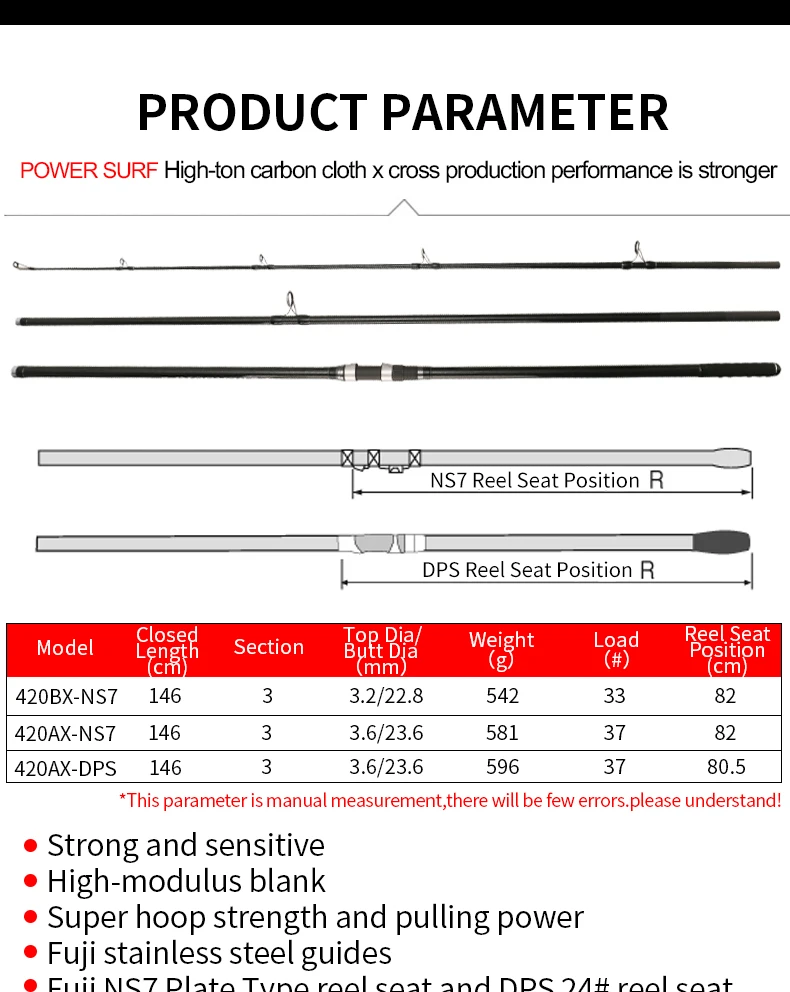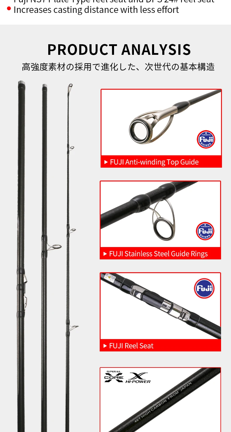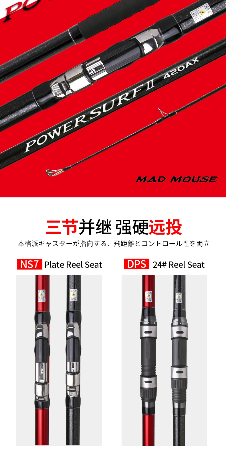 2023 nuevo modelo MADMOUSE POWER SURF II 4,20 M AX/BX piezas completas Fuji 46T alto carbono 3 secciones varillas de fundición de Surf color negro/rojo