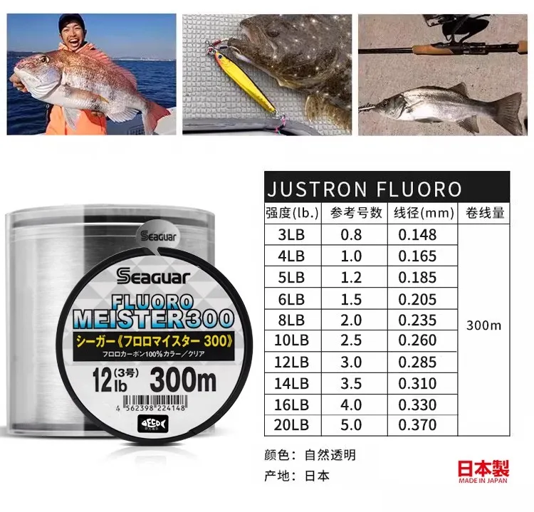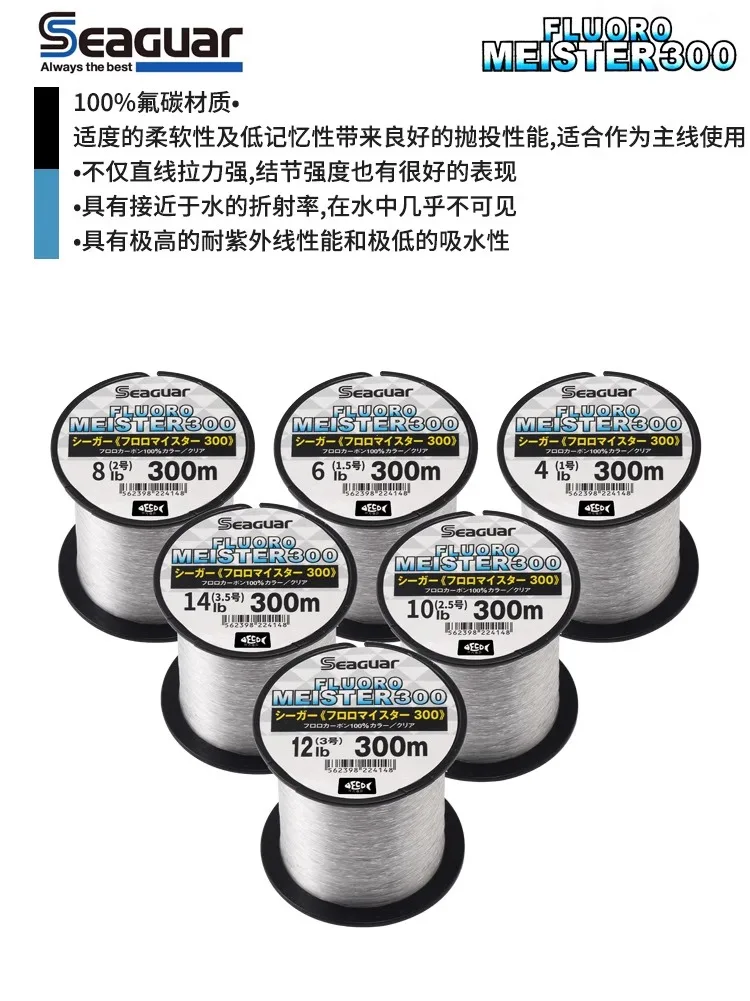 2023 SEAGUAR FLUORO MEISTER 300M hilo de pescar Original 3LB-20LB 100% líneas de pesca de FLUOROCARBON