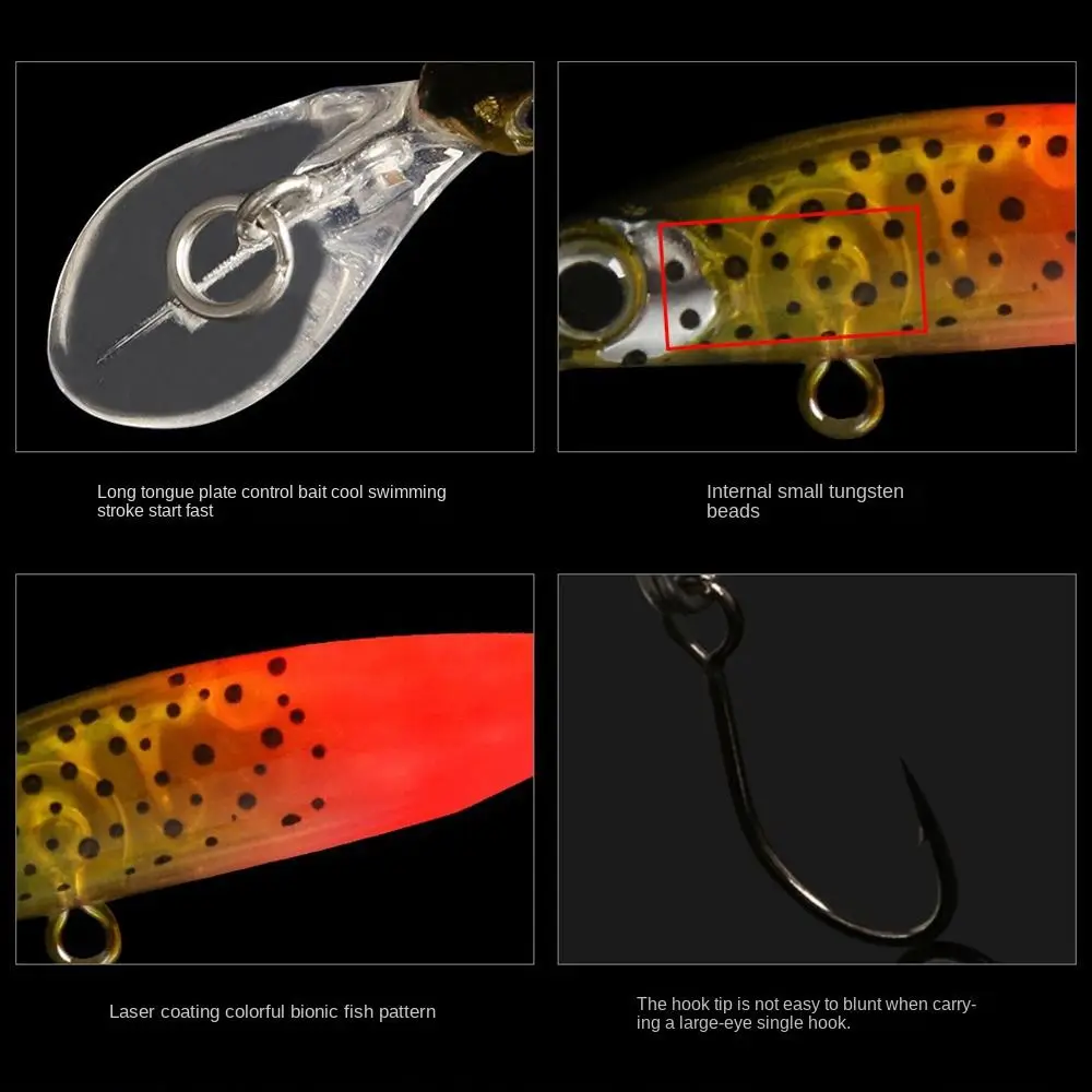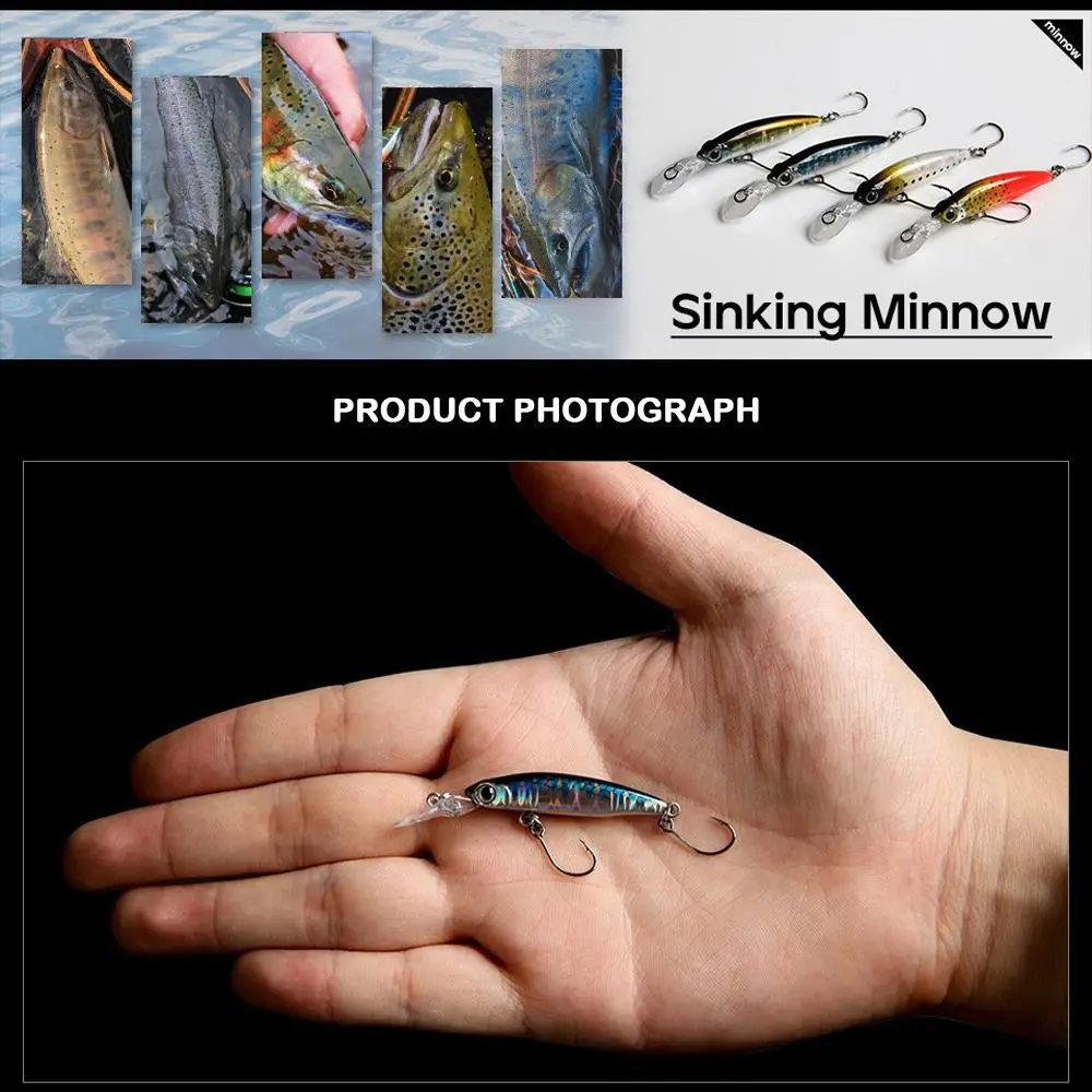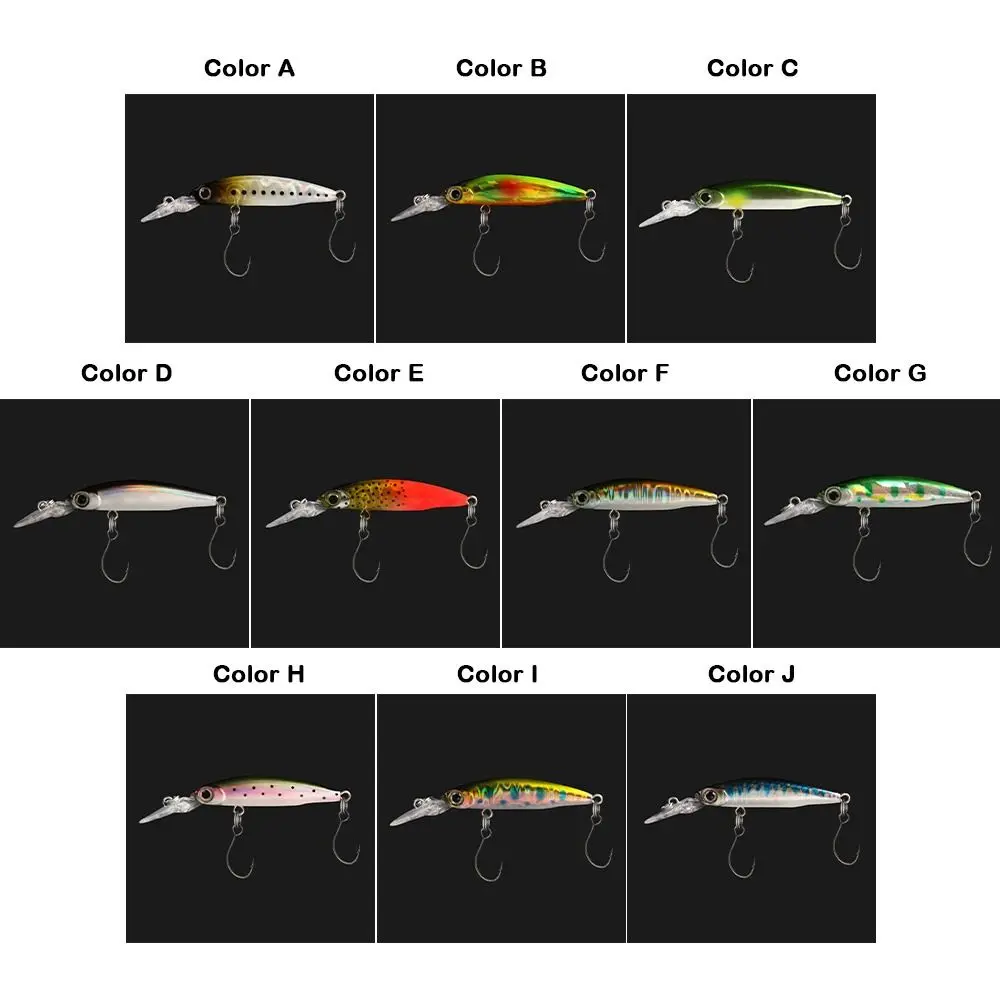 Lure Model:Double Hook Minnow lure Lure Type: Hard Fishing Lure Lure Weight: 1.8g Lure Length:40mm(1.57in) Hooks: Equipped with 2pcs Anti-corrosion Hooks Eyes: 3D Fish Eyes Colors:10 Colors Product Features: 1. Material: ABS plastic, 3D simulation fisheye, three hooks. 2.3D eyes make it a perfect tool for fishing enthusiasts. 3. The colorful body can make fish easy to catch. 4. Water life and fast action. 5. Excellent visual effect to lure fish. 6. This kind of bait will have a lively swimming action in the water, which will attract the attention and attack of fish. Package Included: 1pc Minnow Baits