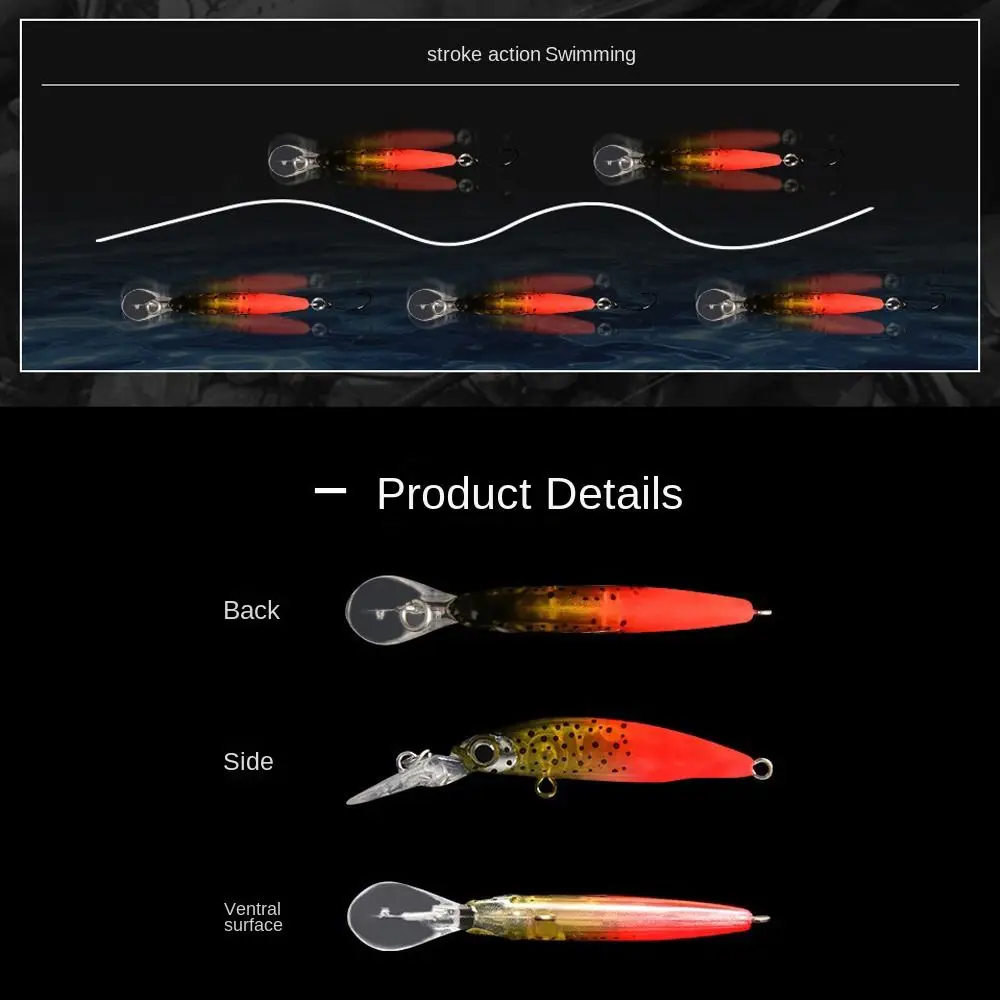 6. This kind of bait will have a lively swimming action in the water, which will attract the attention and attack of fish.