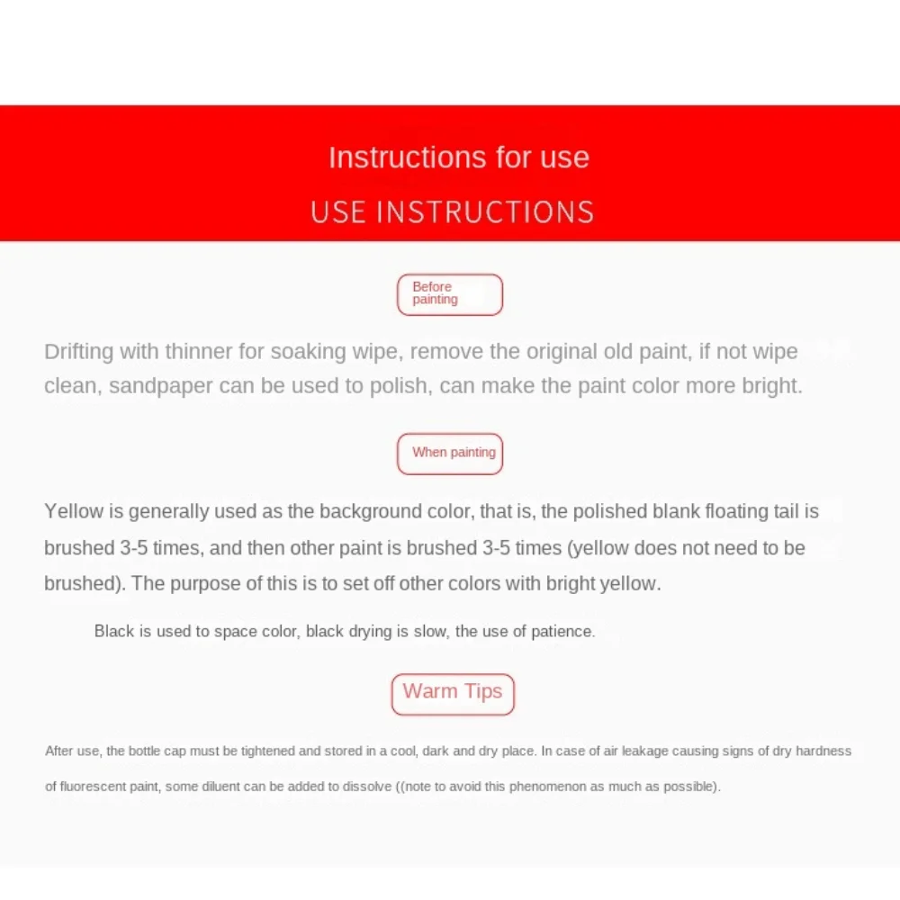 Tipo de producto: Pintura fluorescente para flotadores de pesca