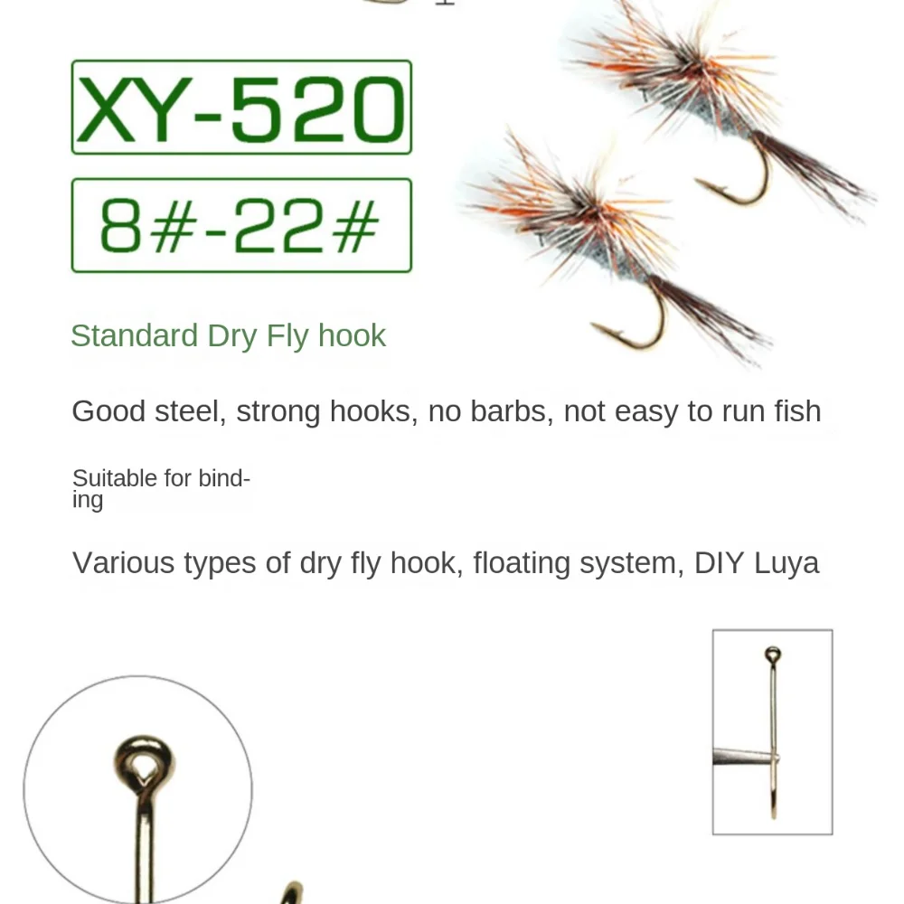 Item No.: BH520 Fish hooks it has a standard shank length and standard wire, suitable for tying many types of dry fly hooks, such as Harpy, Adams, Parachute, Royal Wulff, Shi Cain'e (Humpy, Adams, Parachute, Roxal Wulff, Elk Haircaddis), hook shank tying is not easy to slip the line, based on the principle of mechanical design, to protect the friction between the line and the hook surface, greatly reducing the fish on the hook. The hook shank is designed according to the principle of mechanics, which protects the friction between the thread and the hook surface and greatly reduces the chance of thread breakage when the fish is hooked. Sharp Hook Tip Each hook tip is polished and tested several times to ensure the sharpness of the hook, which can achieve the effect of fast piercing speed and deep piercing length.