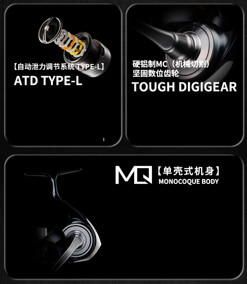 El nuevo ATD de arrastre en la línea reduce la carga y promete una lucha segura y cómoda con una alta respuesta y un deslizamiento suave. Esta operatividad no se puede obtener sin una rigidez sólida. Es por eso que CERTATE se ha centrado constantemente en la rigidez. El símbolo de esto es el "CUERPO MONOCOQUE", una estructura moldeada de una pieza hecha de material de aluminio. Esta es la tecnología patentada de DAIWA que minimiza la flexión del cuerpo bajo cargas pesadas, un punto débil de los carretes giratorios con estructuras anteriores, para obtener una fuerte potencia de bobinado. La placa del motor atornillada en el cuerpo también está hecha de aluminio. En otras palabras, la estructura interna, que es el corazón del carrete, está sólidamente soportada por el cuerpo de metal completo hecho de aluminio. Los engranajes impulsores dentro del cuerpo se tratan con un tratamiento de superficie especial para aumentar su dureza y reducir el daño a los engranajes bajo cargas pesadas. El eje principal, que transmite la potencia a la unidad delantera, está hecho de acero inoxidable, que es incluso más rígido que el aluminio, para maximizar el rendimiento sin pérdida de potencia.
