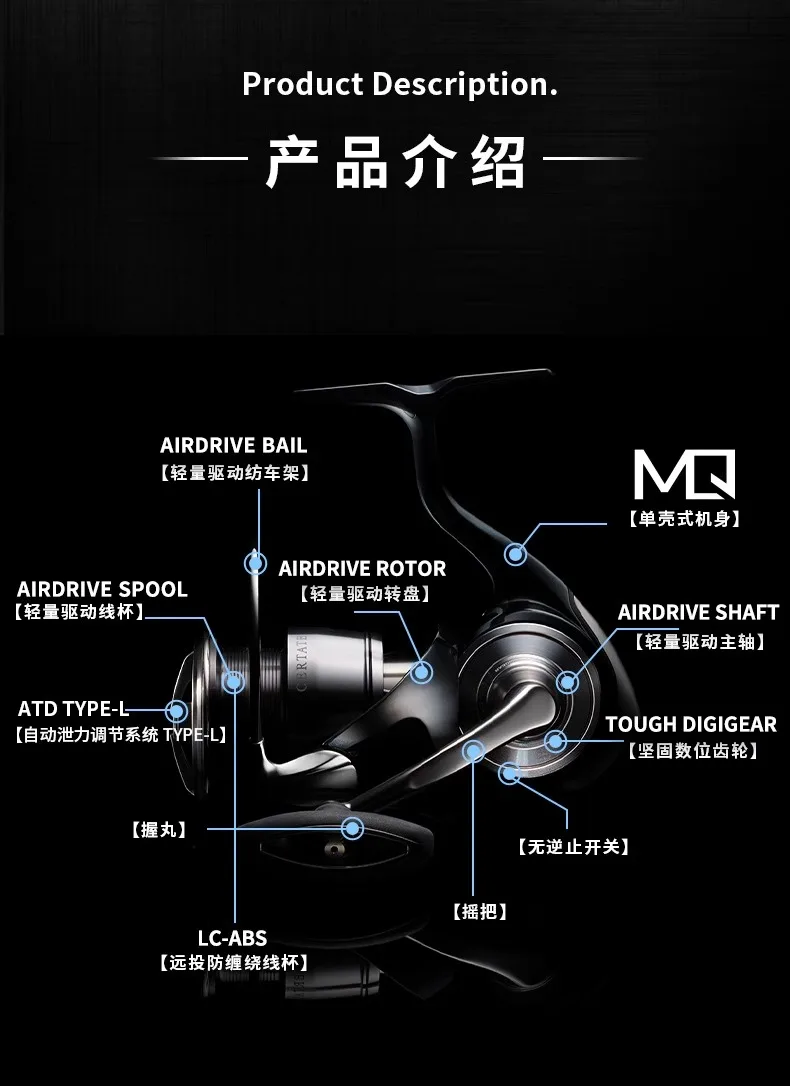 El Concepto de carrete giratorio de próxima generación "AIRDRIVE DESIGN" en el nuevo CERTATE continúa la búsqueda de una operatividad superior. Es un concepto de diseño que tiene como objetivo permitir a los pescadores controlar los señuelos como quieran, y se compone de hasta cuatro tecnologías. Los beneficios de un carrete equipado con diseño AIRDRIVE son demasiado grandes para ser ignorados. La operatividad ligera resultante del equilibrio de peso óptimo se traduce en una rotación mejorada que permite a los pescadores sentir una sensación de control excepcional con sus aparejos. Sensibilidad de bobinado que permite a los pescadores sentir incluso la más mínima Picadura De pez o cambio en la corriente.