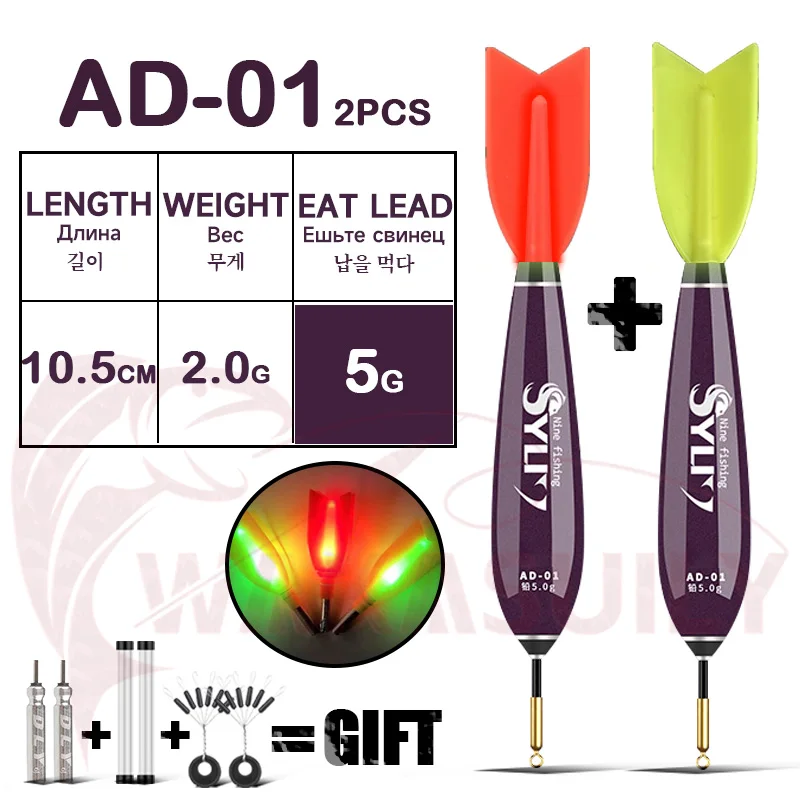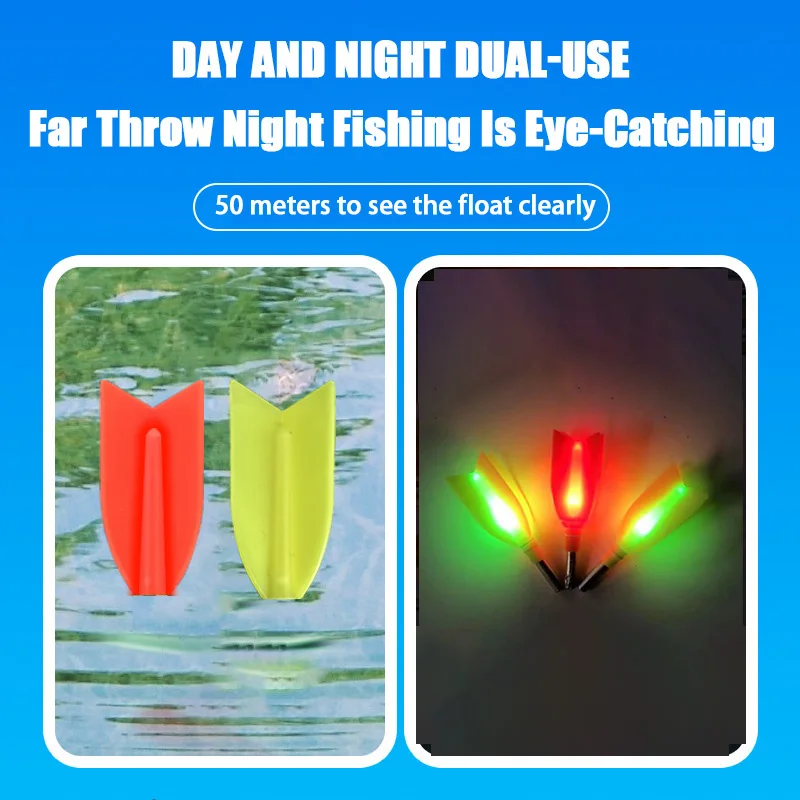 2025 nuevo flotador de pesca en roca, luz LED nocturna electrónica de 2 piezas, flotador llamativo de 3 esquinas, equipo de pesca luminoso verde/rojo