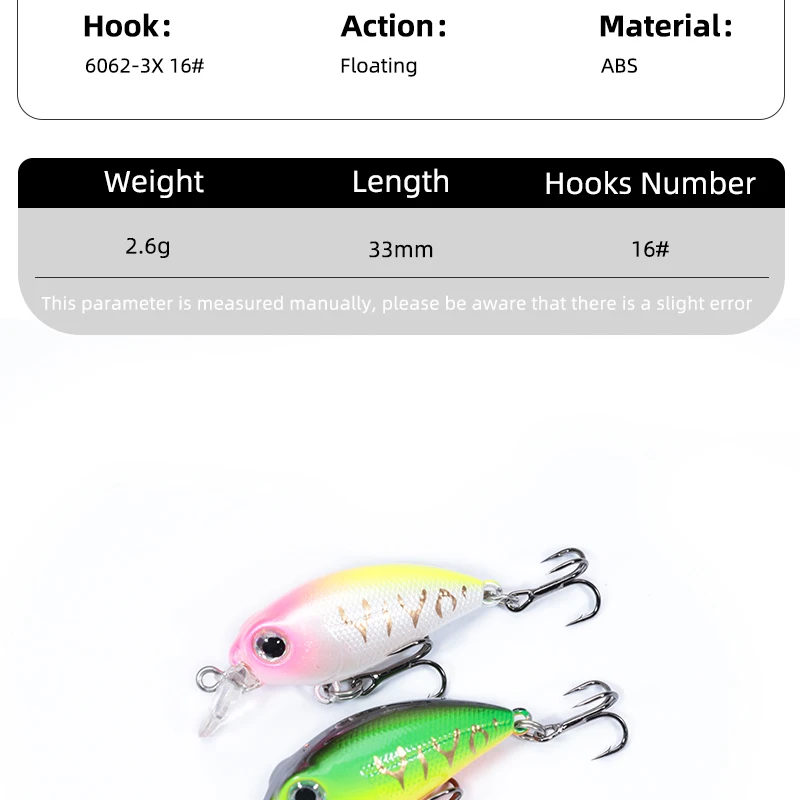 Descripción :Señuelo de pesca flotante Mini Minnow Wobblers de 2,6g, señuelo para lubina, perca, Lucio, trucha, cebo duro, Jerkbait, aparejos Crankbait artificiales, novedad de 2025