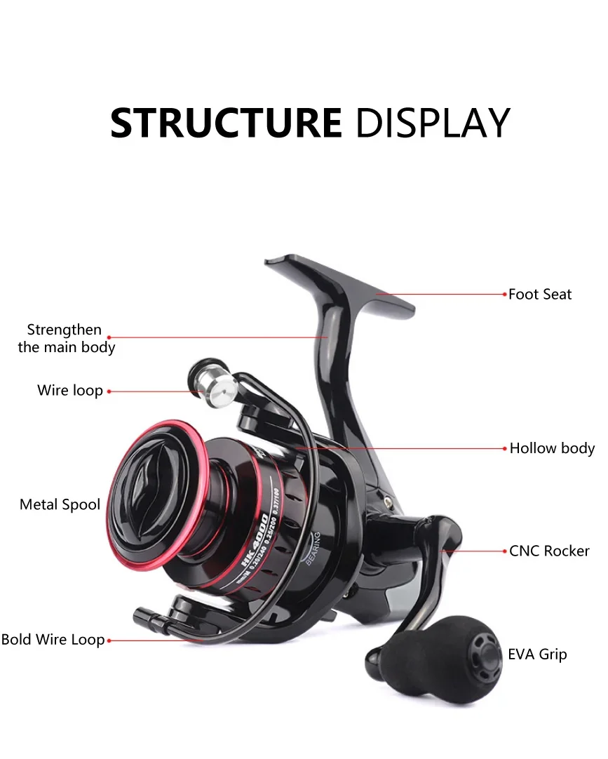2025 nuevo HK1000-7000 Metal/EVA mano izquierda/derecha intercambiable carrete de pesca agarre 5,2: 1 carrete giratorio de alta velocidad pesca de carpa carrete de agua salada