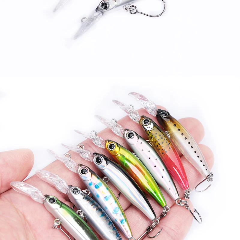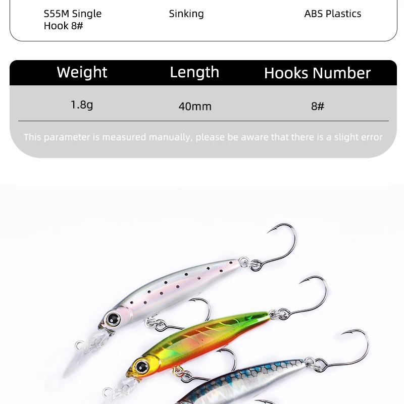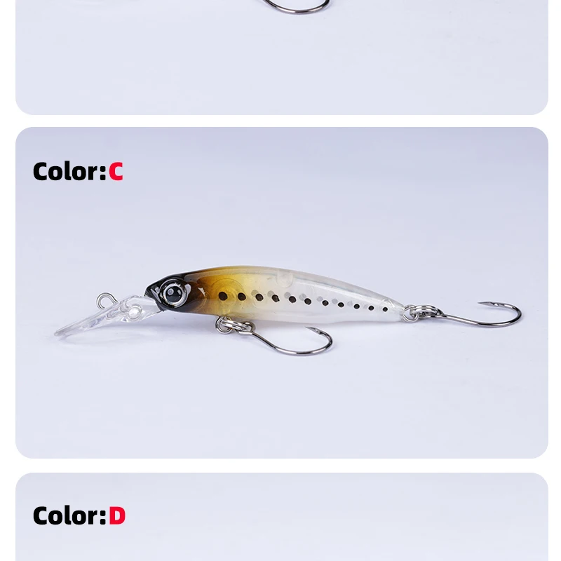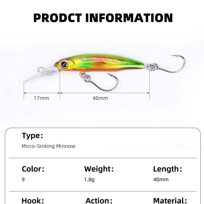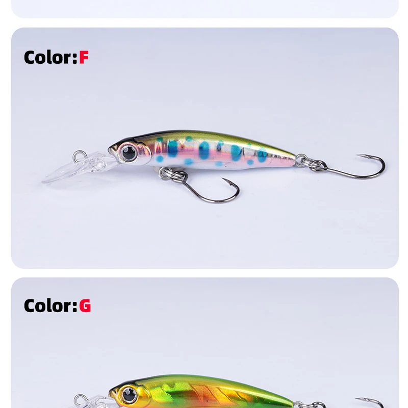 Descripción :Señuelo Mini Minnow hundido, plato de lengua larga, señuelo de pesca Minnow de 1,8g/40mm con un solo gancho, revestimiento láser, Señuelos de trucha, novedad de 2023