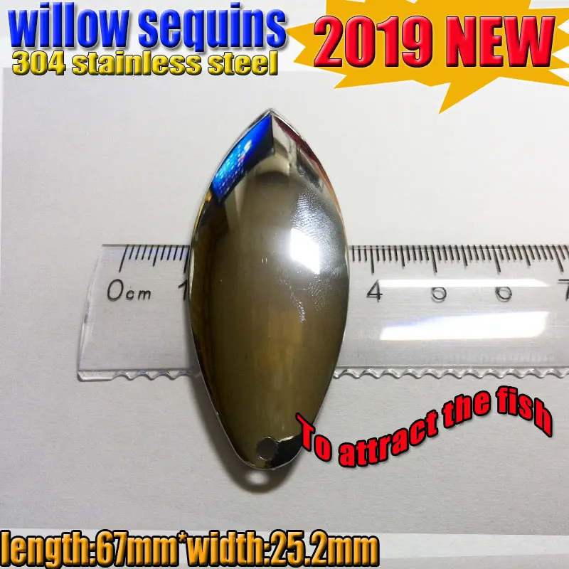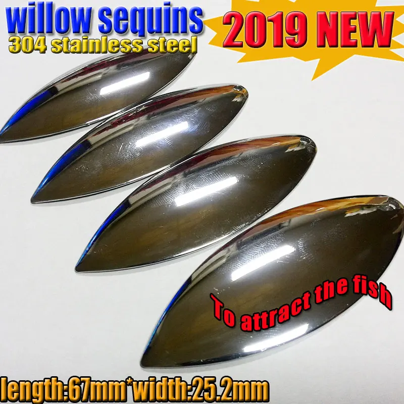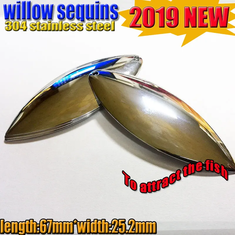 2025 nuevo tamaño grande de lentejuelas de hoja de sauce de pesca tamaño: 67mm * 25,2mm cantidad 10 unids/lote 304 acero inoxidable