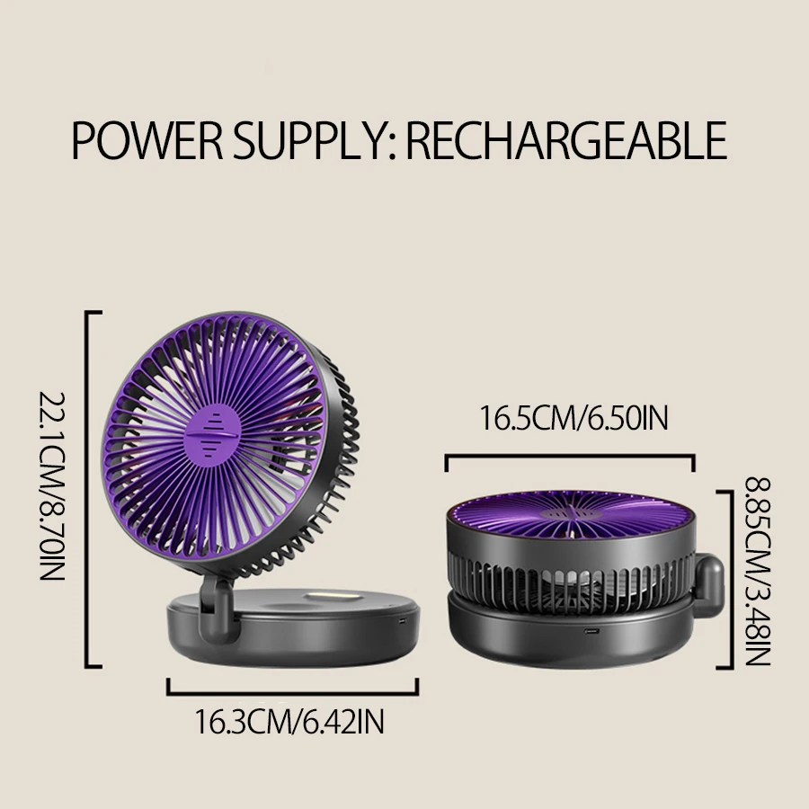 El tamaño compacto y el diseño plegable del ventilador hacen que sea fácil de transportar, perfecto para viajes o uso en la oficina.