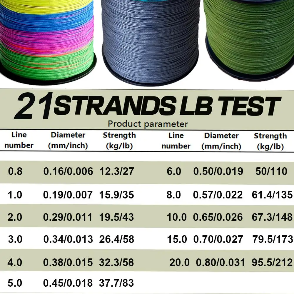 1 El hilo de pescar trenzado de 21 hilos es mucho más resistente y duradero que los hilos de pescar tradicionales, lo que lo hace perfecto para la pesca en el mar y los peces grandes, lo que le permite capturar peces fácilmente.